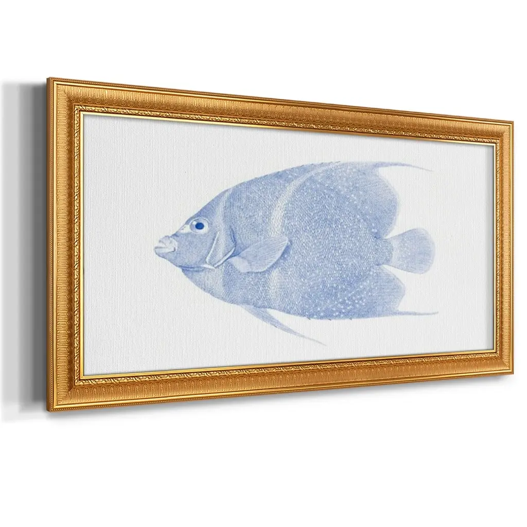 Blue & White Tropical Fish V Premium Framed Canvas- Ready To Hang - 18x34 - Pewter
