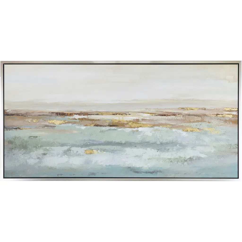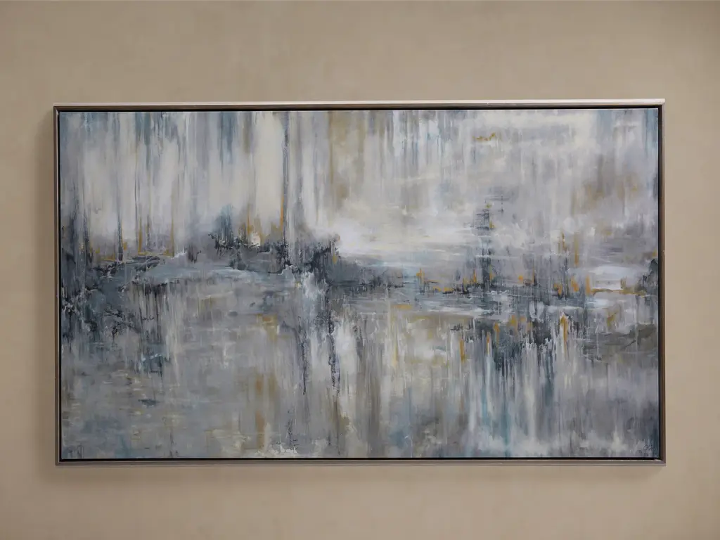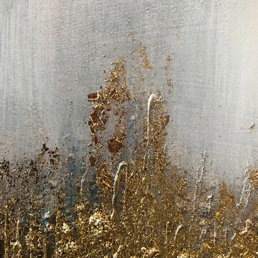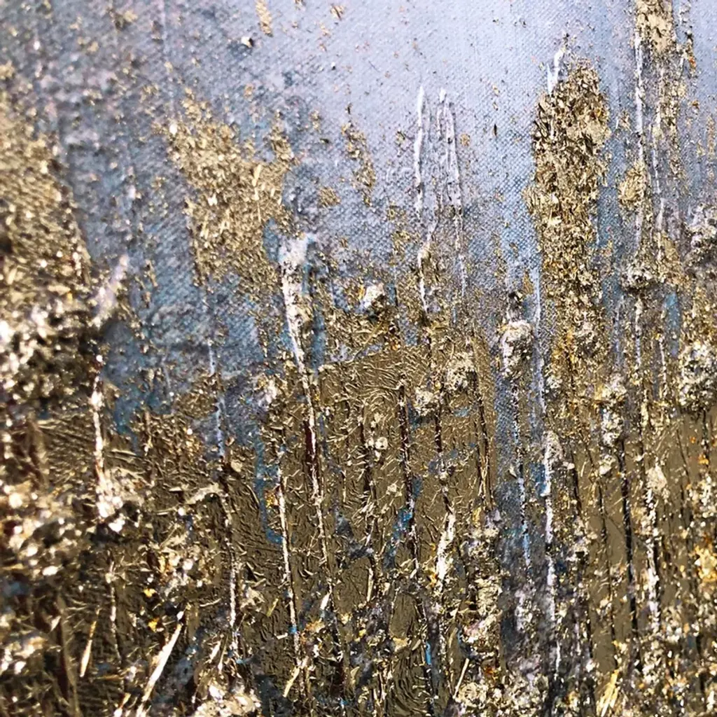 Blue Art is a hand-painted abstract painting on canvas.Divided into three horizontally distributed sections, it presents a striking visual contrast between the warm color of gold and cool shades of blue and gray. The remarkable texturality of the painting adds depth to the work. With a wooden inner frame and painted edges, the painting is ready to hang.The AGAVE Quadri collection represents the excellence of contemporary art applied to the world of interior design. Each piece, hand-painted with artisanal techniques by the finest artists in collaboration with the Italian company AGAVE, combines abstract, natural, and figurative elements to create unique and refined works. These paintings transform spaces into environments of great elegance and character, perfect for interior design projects that require a distinctive and artistic touch.