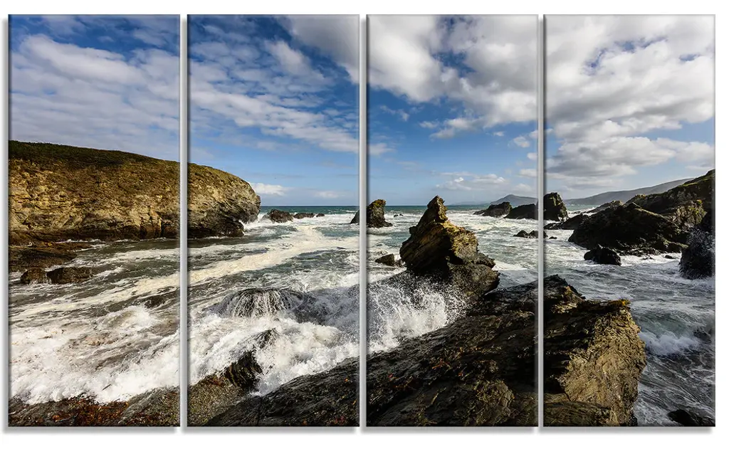 "Blue Atlantic Coast In Spain" Seashore Canvas Photo Print, 4 Panels, 48"x28"