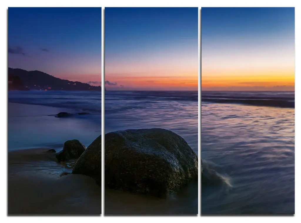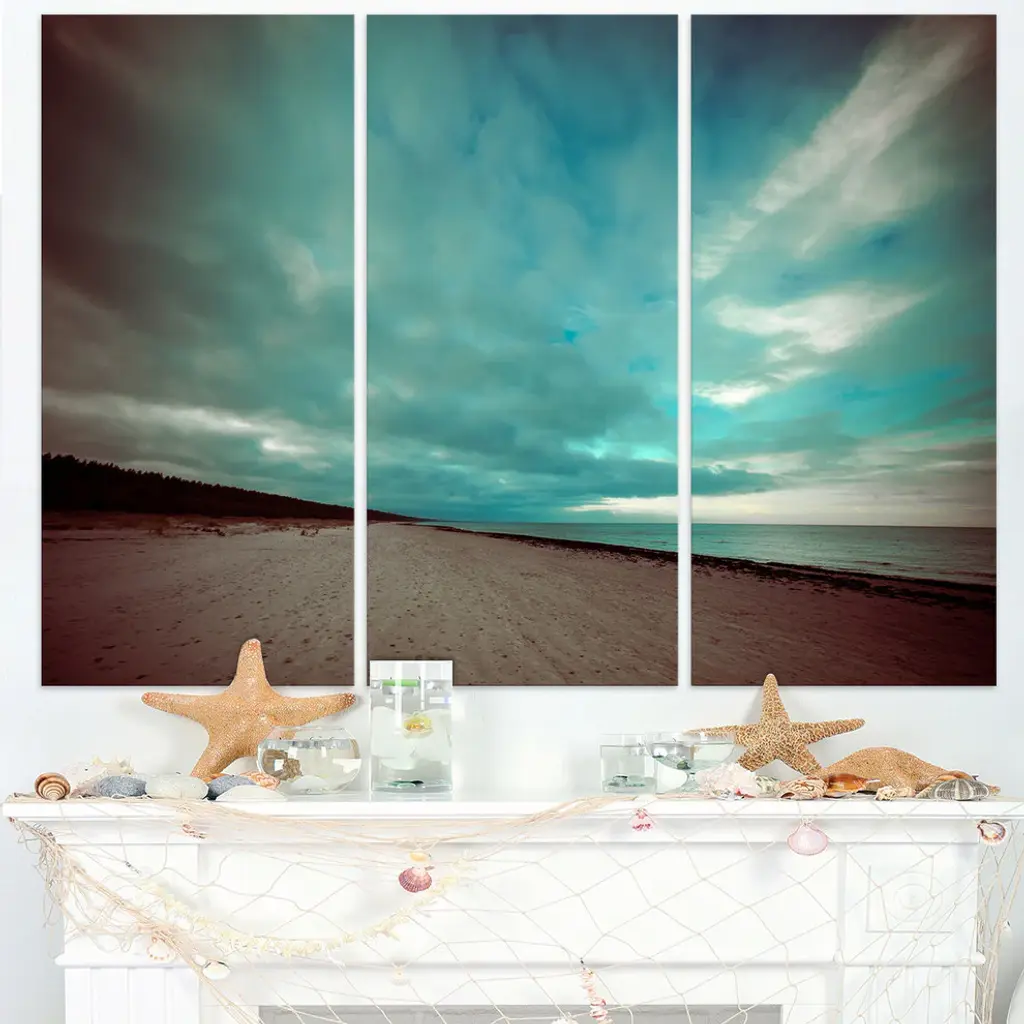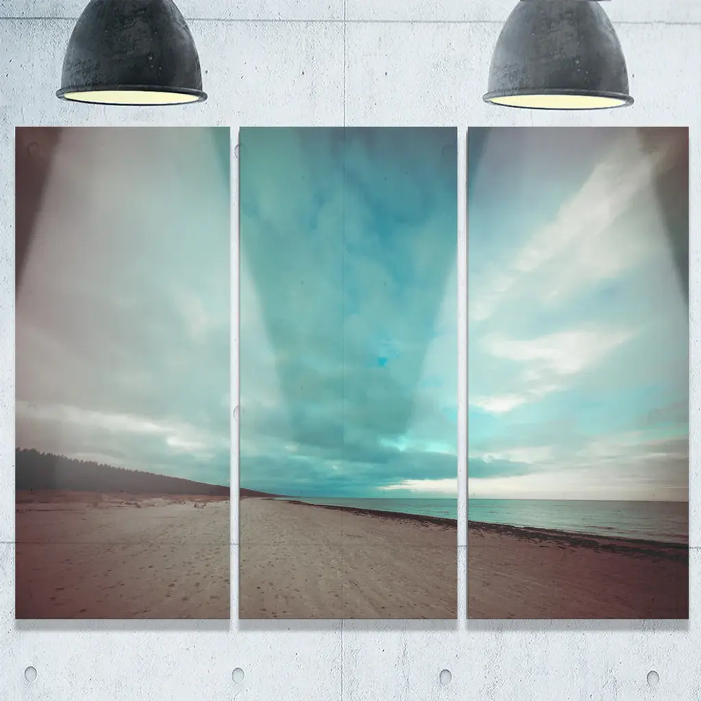 "Blue Baltic Beach In Fall With Clouds" Metal Wall Art, 3 Panels, 36"x28"