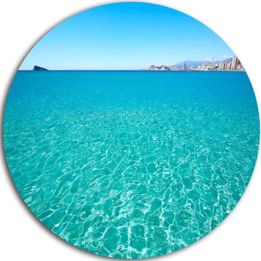 Blue Benidorm Levante Beach, Seashore Round Metal Wall Art, 36"
