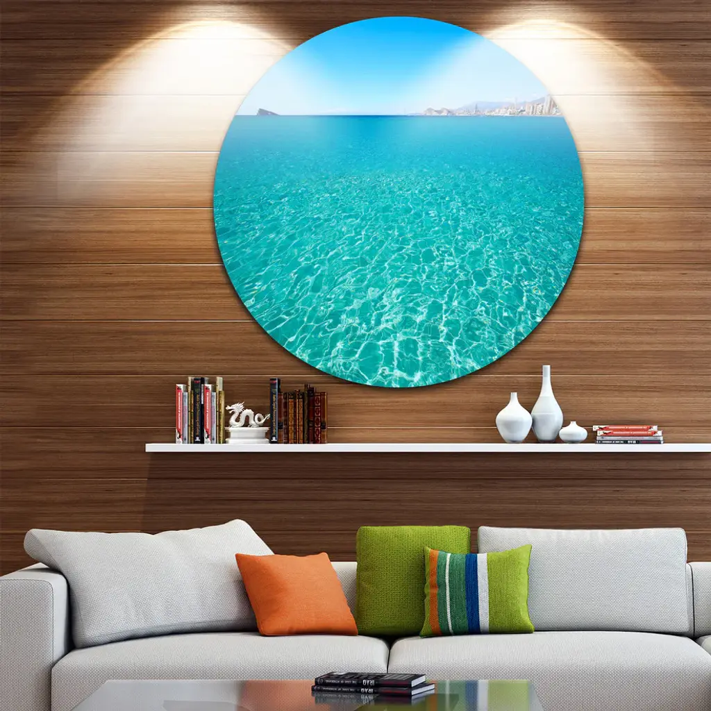 Bring Contemporary Abstraction to your home with this large Circle Metal wall art. This Blue Benidorm Levante Beach Metal Artwork makes it the focal point of any room or office. - White Gloss Coating ensures colors are extra vibrant with light reflection.- Aluminum grade Sheet Metal with 1 inch mounting frame on the back giving the illusion that the artwork is floating on the wall..- Mounting Brackets are included along with instructions.- High Quality Digital images are created directly into a glossy aluminum panel producing a stunning and captivating print into the glossy finish of the metal.- Water, Fire and Scratch resistant HD Aluminum panels.- Looks better than any photo paper and guaranteed to last at least 20 years- Easy to clean with a microfiber cloth. Colors are far superior to regular Canvas Art. - Easy to Hang