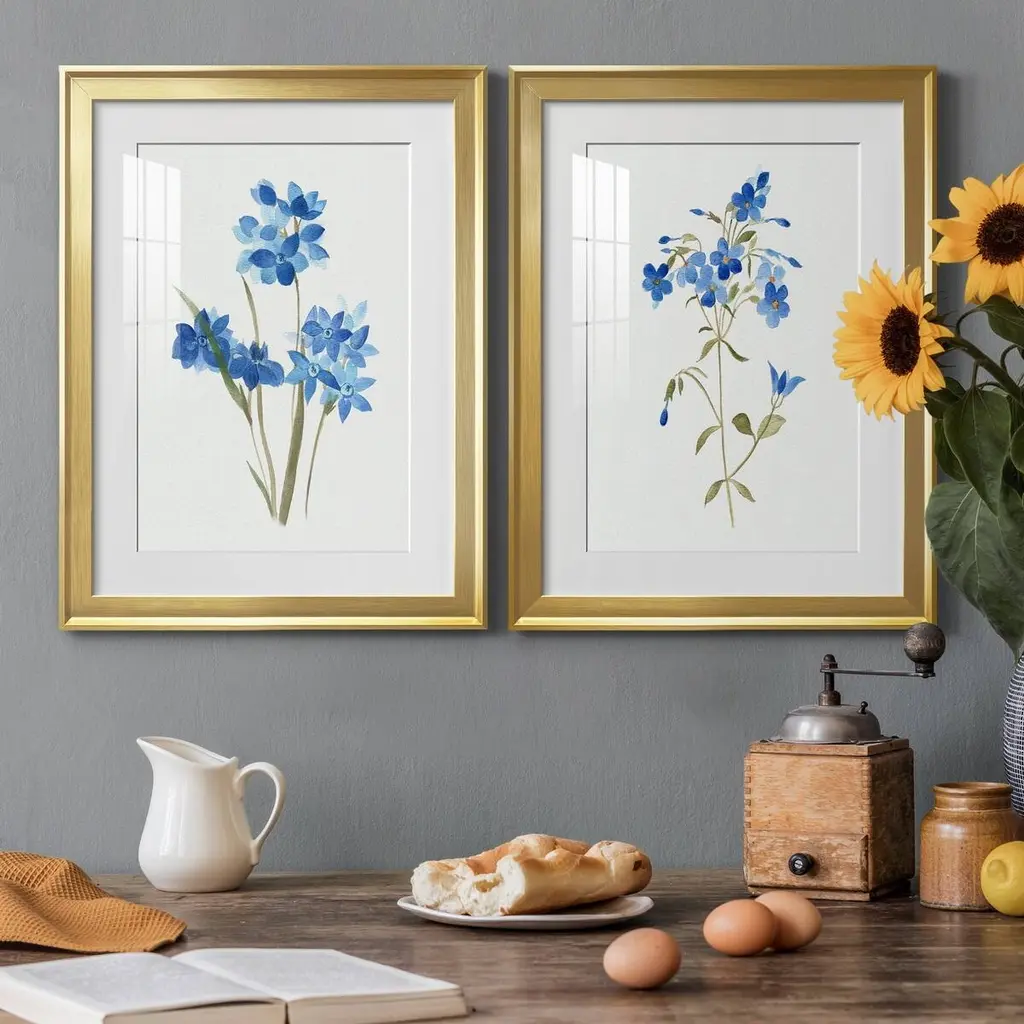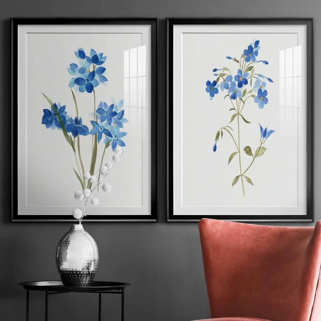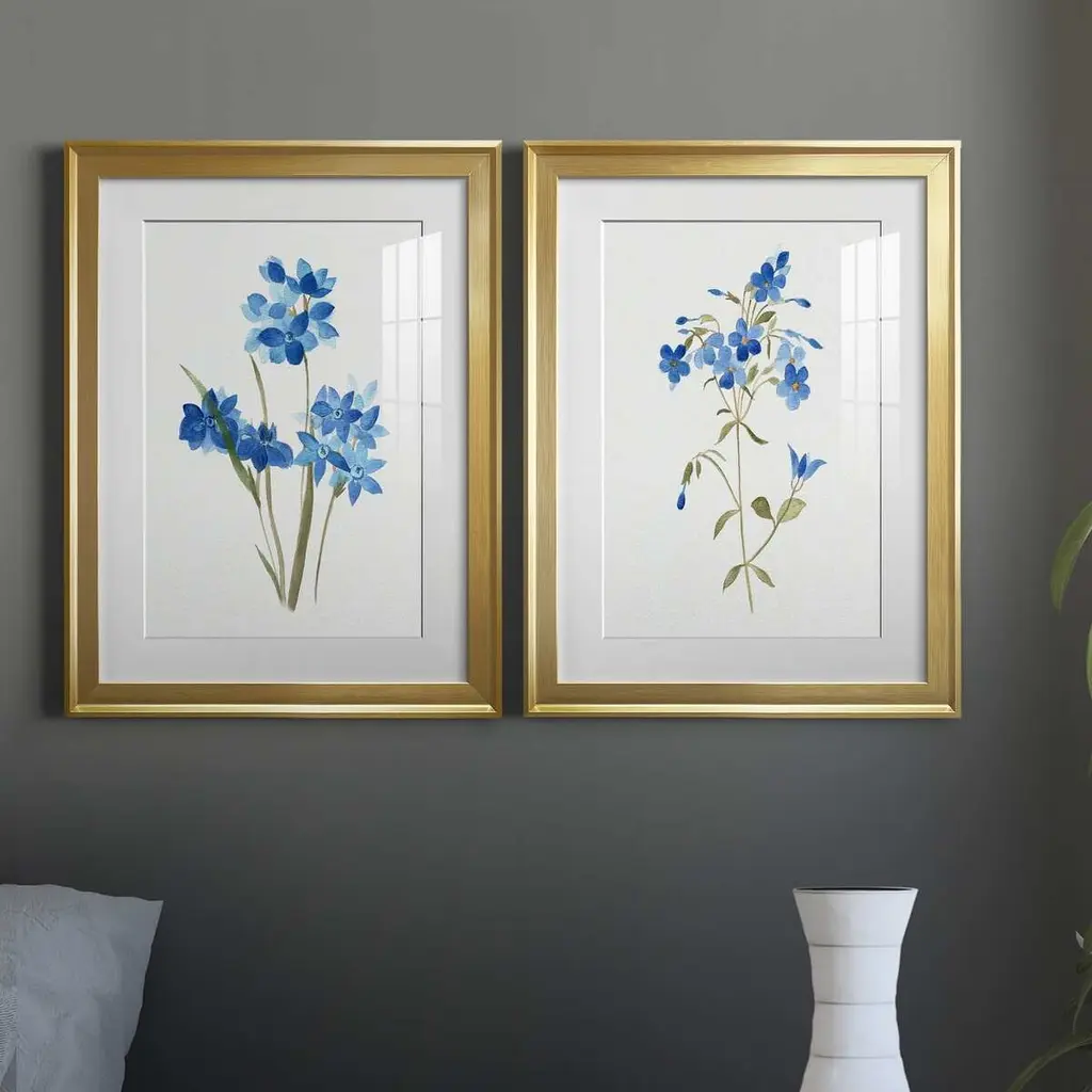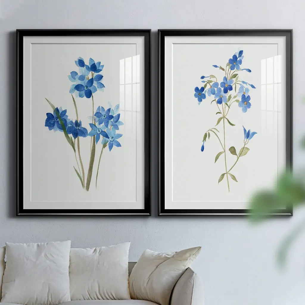 Blue Blossom Botanical I Premium Framed Print - Ready to Hang A Premium Framed Print created to last. Framed in distressed wood and available in an array of sizes and colors Featuring a beveled a solid wood stretcher bar, each piece comes ready to hand 4 SIZES AVAILABLE 30.5''X42.5'' - Overall Size 26.5'X36.5'' - Overall Size 22''x30'' - Overall Size 18''x24'' - Overall Size Each piece is made to order. Each piece comes with hanging hardware. Made in the USA Ready to Hang Giclee Paper Print Acrylic Glass Beveled Matt Board