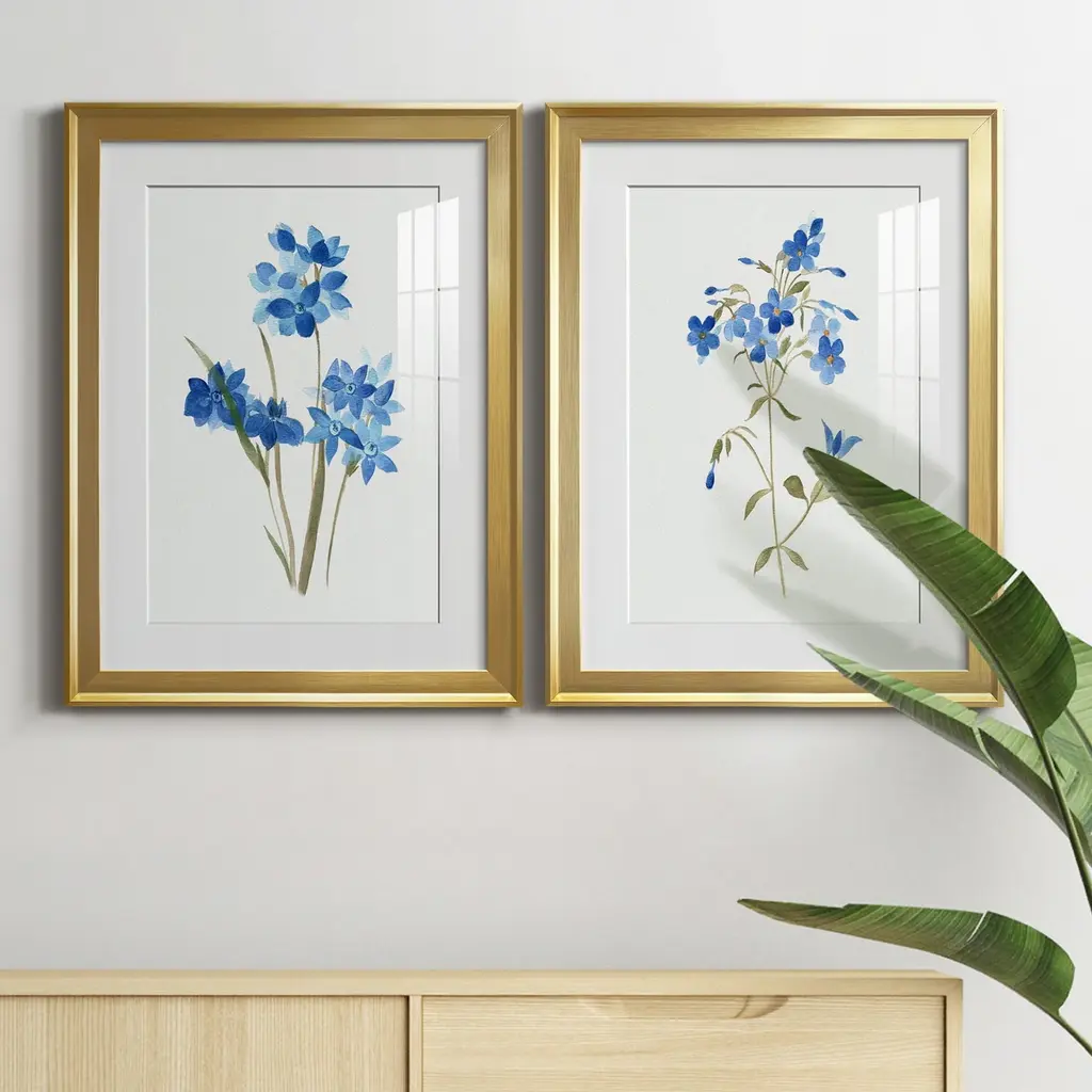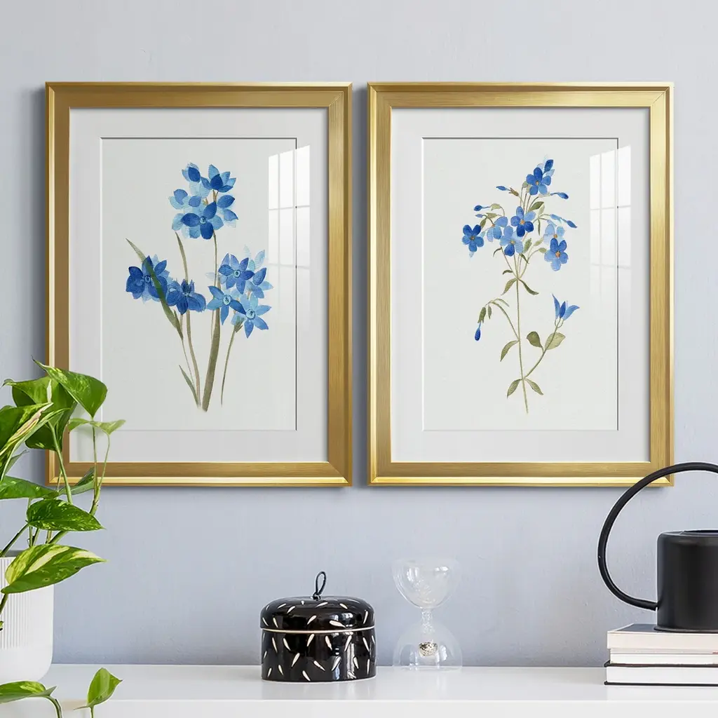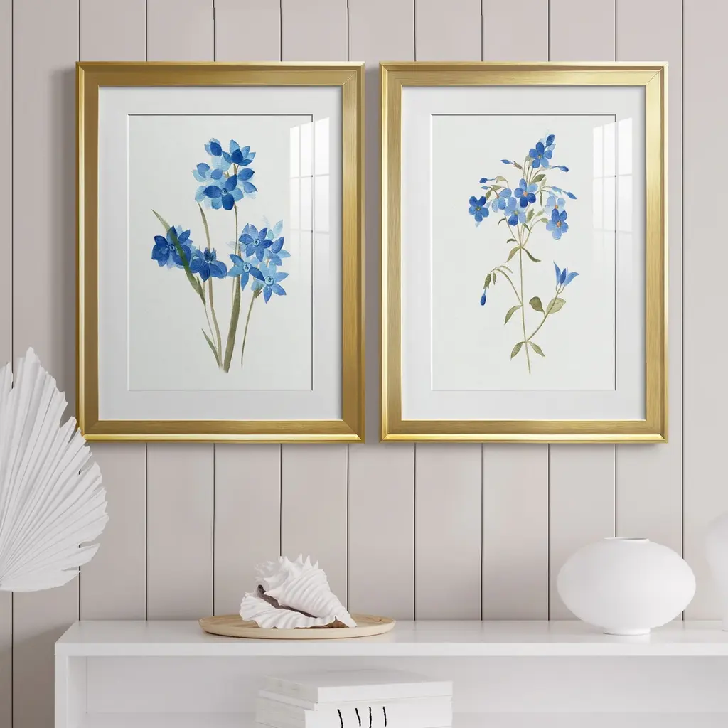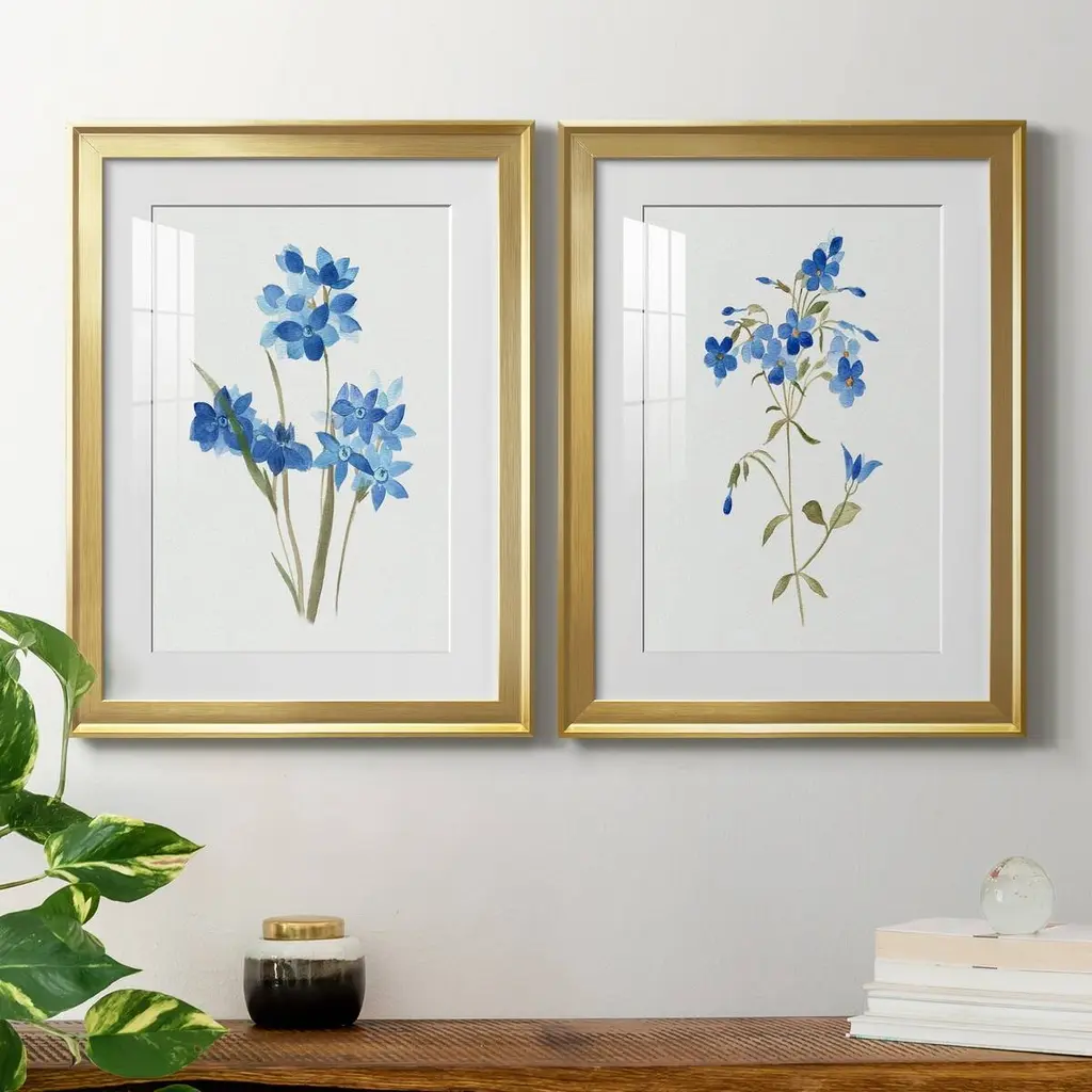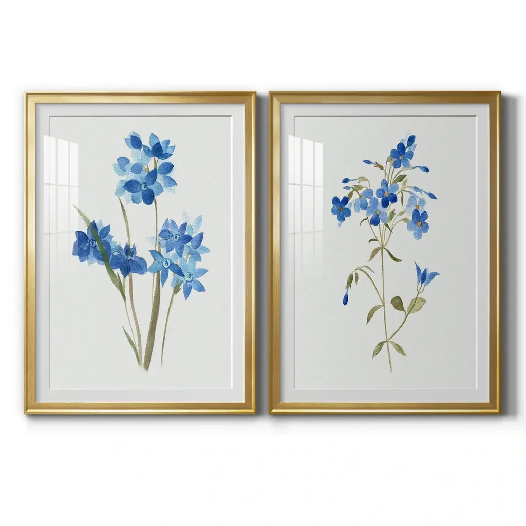 Blue Blossom Botanical I Premium Framed Print - Ready to Hang A Premium Framed Print created to last. Framed in distressed wood and available in an array of sizes and colors Featuring a beveled a solid wood stretcher bar, each piece comes ready to hand 4 SIZES AVAILABLE 30.5''X42.5'' - Overall Size 26.5'X36.5'' - Overall Size 22''x30'' - Overall Size 18''x24'' - Overall Size Each piece is made to order. Each piece comes with hanging hardware. Made in the USA Ready to Hang Giclee Paper Print Acrylic Glass Beveled Matt Board