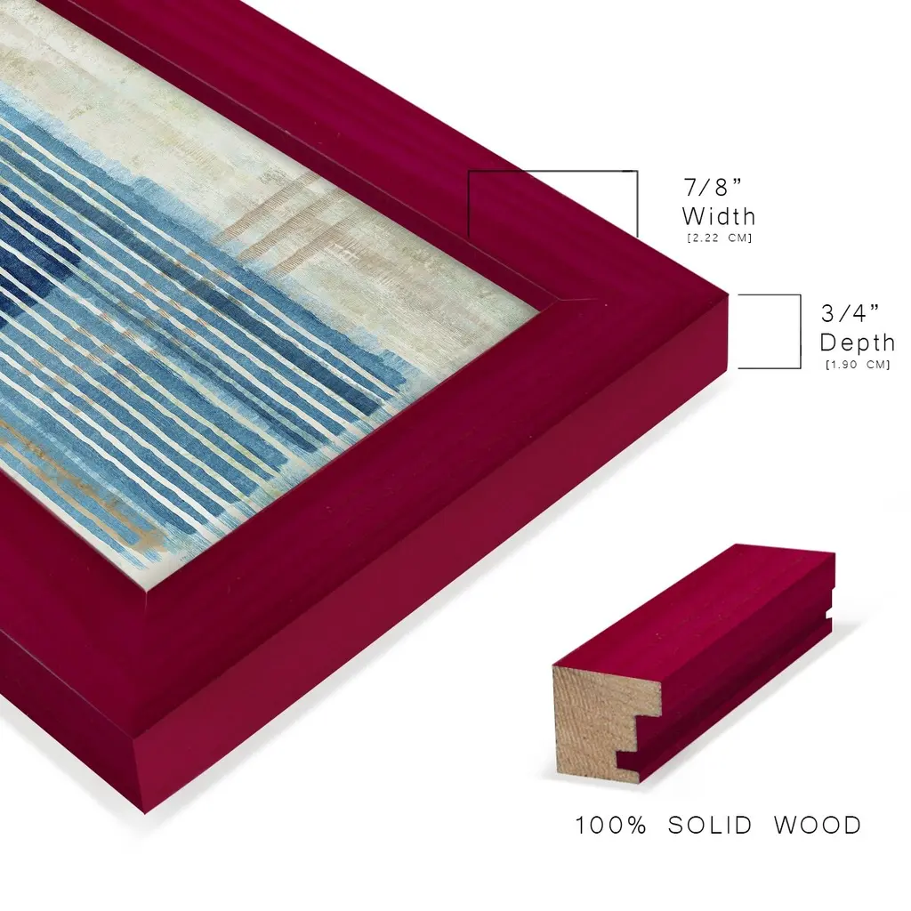 Blue Blue Horizon I -EZ SWITCH Framed Print w/glass-Cherry Red A delightful, framed print. Featuring a solid wood frame with real wood glass. This premium print is giclee quality. In addition, every frame features a removable back and table top stand. This allows you to change your art in the future or to just stand the art on a table for a new look. We are sure you'll enjoy our new series of EZ SWITCH Framed Art. Solid Wood Frame Real Glass Removable / Replaceable Art Built in Tabletop Stand Sizes range from 4x6 up to 12x15 - buy just one or pair them up as sets as you see fit.