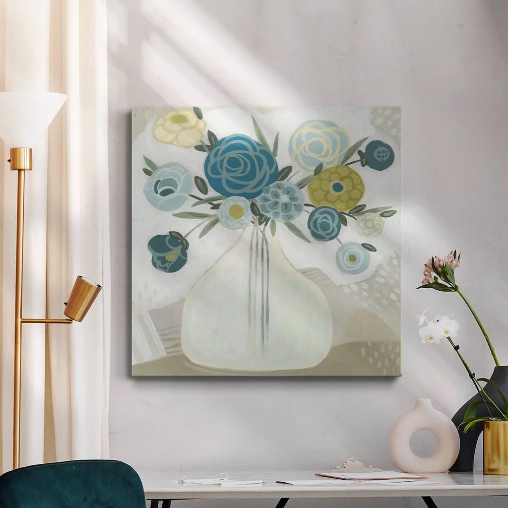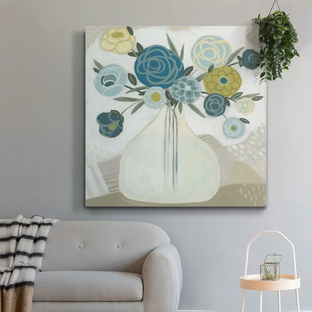 Blue Bohemian Bouquet II-Premium Gallery Wrapped Canvas - Ready to Hang A premium hand stretched gallery wrapped canvas print created to last. Featuring a beveled a solid wood stretcher bar, each piece comes ready to hand 5 SIZES AVAILABLE 10''X10'' - Overall Size 16''x16'' - Overall Size 24''x24'' - Overall Size 32''x32'' - Overall Size 40''x40'' - Overall Size Each piece is made to order. Built to Last Each piece comes ready to hang Solid wood stretcher Fade and Water resistant Made domestically