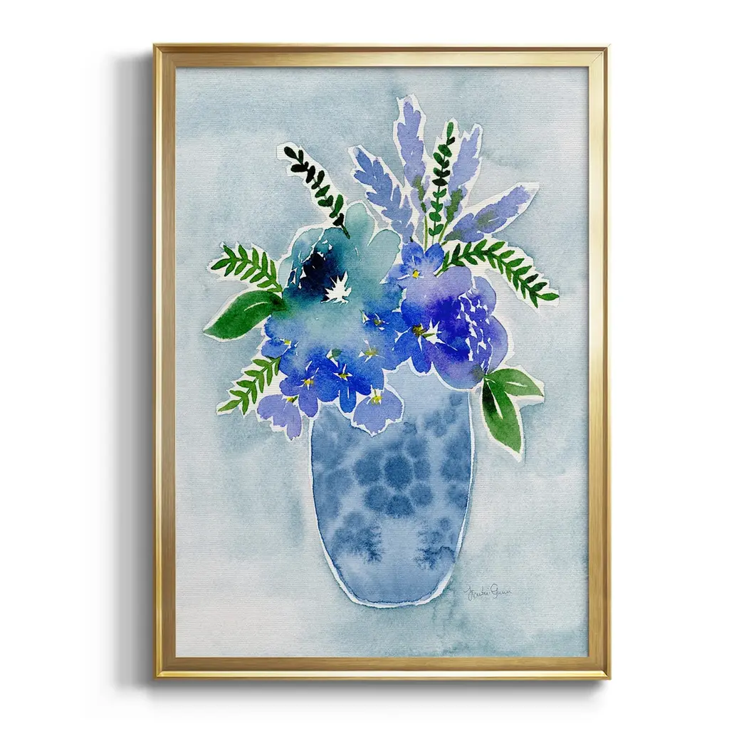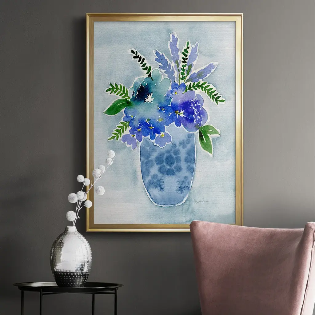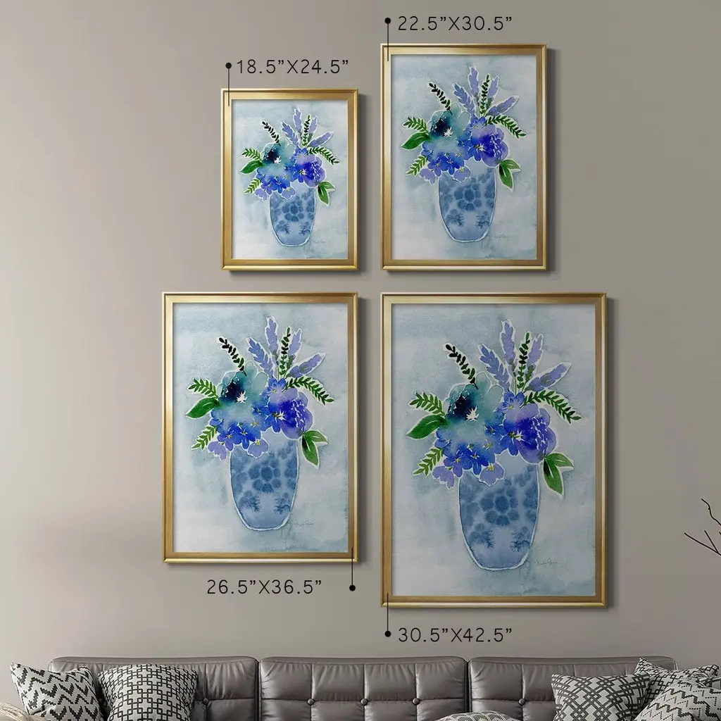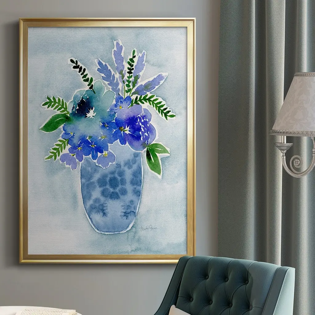 Blue Bouquet I Premium Framed Print - Ready to Hang A Premium Framed Print created to last. Framed in distressed wood and available in an array of sizes and colors Featuring a beveled a solid wood stretcher bar, each piece comes ready to hand 4 SIZES AVAILABLE 30.5''X42.5'' - Overall Size 26.5'X36.5'' - Overall Size 22.5''x30.5'' - Overall Size 18.5''x24.5'' - Overall Size Each piece is made to order. Each piece comes with hanging hardware. Made in the USA Ready to Hang