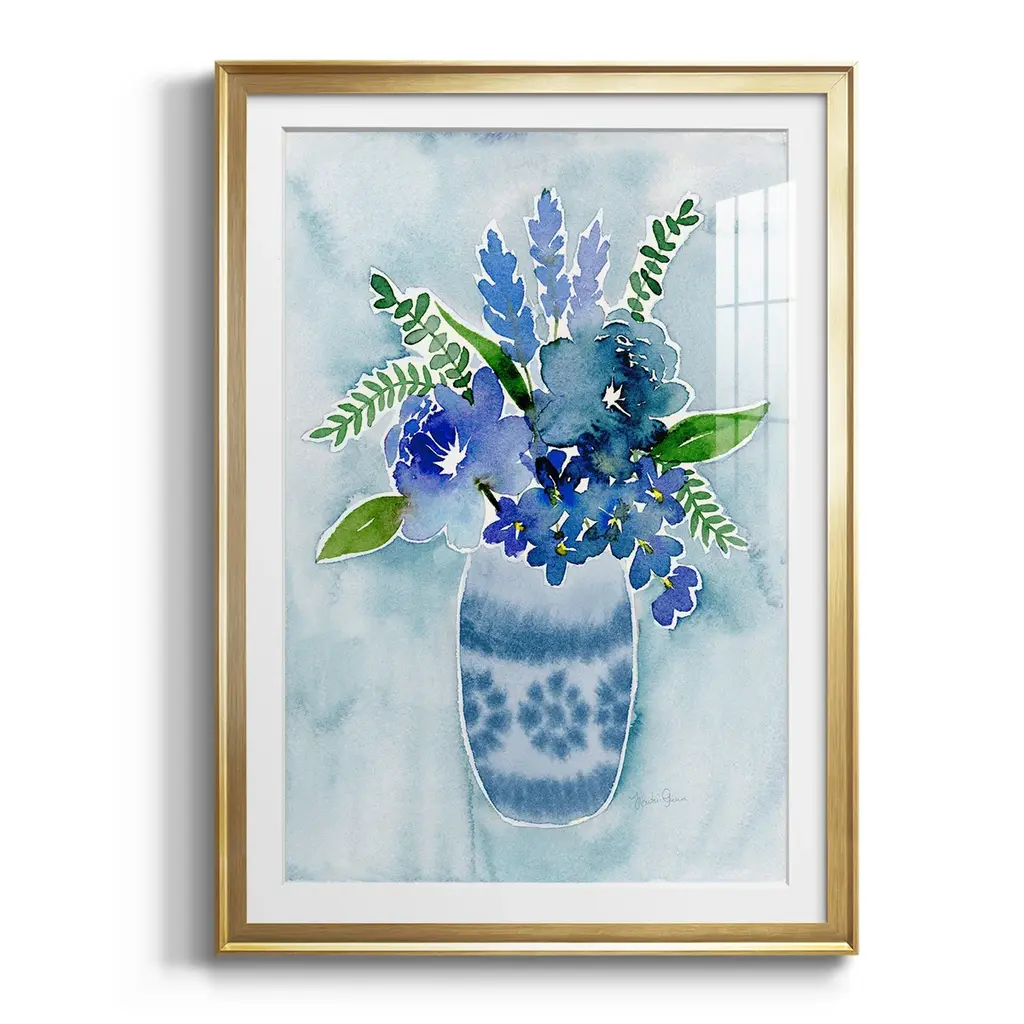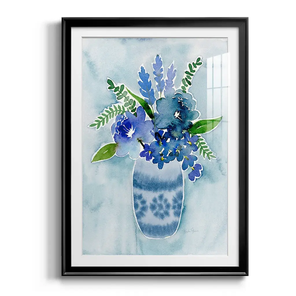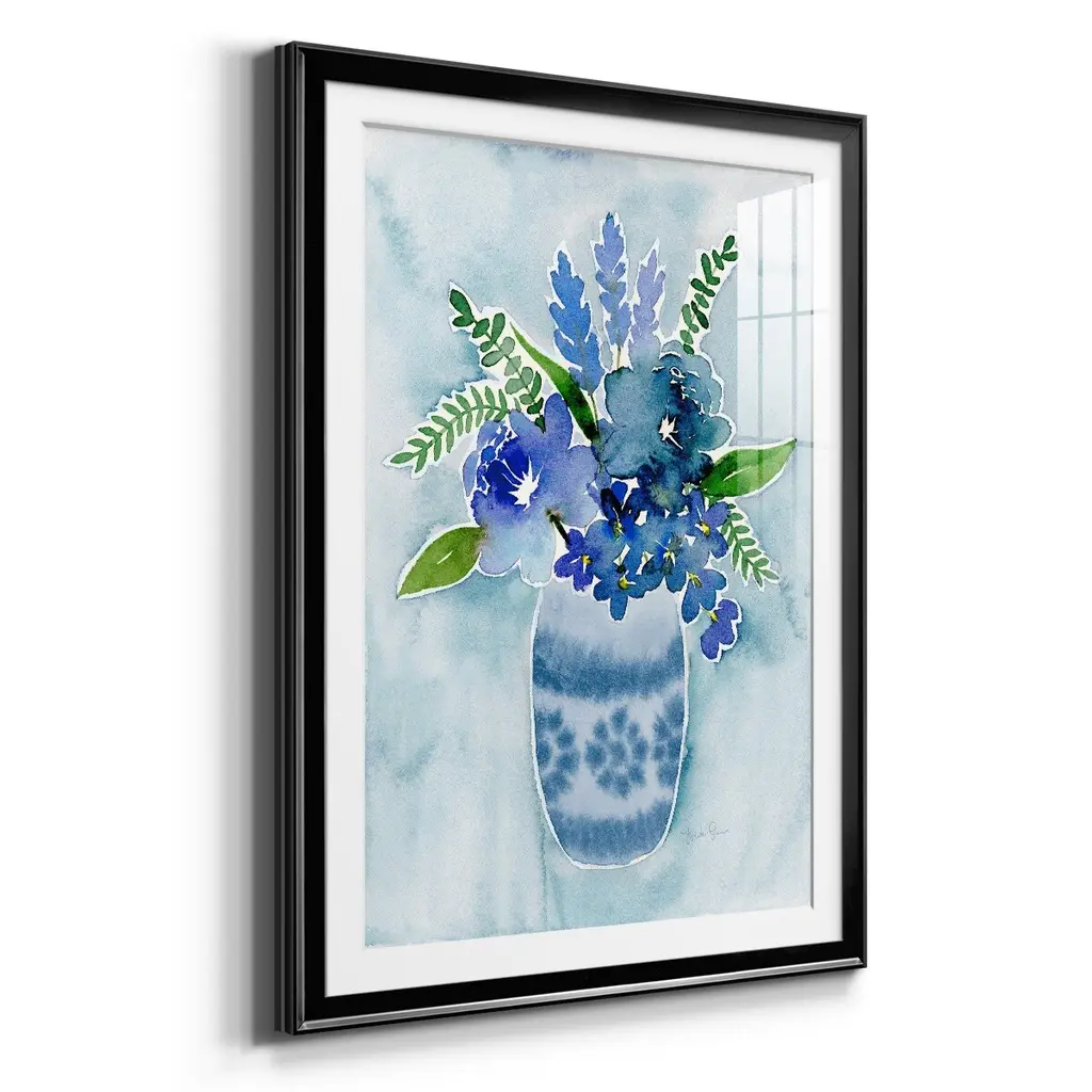 Blue Bouquet II Premium Framed Print - Ready to Hang A Premium Framed Print created to last. Framed in distressed wood and available in an array of sizes and colors Featuring a beveled a solid wood stretcher bar, each piece comes ready to hand 4 SIZES AVAILABLE 30.5''X42.5'' - Overall Size 26.5'X36.5'' - Overall Size 22.5''x30.5'' - Overall Size 18.5''x24.5'' - Overall Size Each piece is made to order. Each piece comes with hanging hardware. Made in the USA Ready to Hang Giclee Paper Print Acrylic Glass Beveled Matt Board