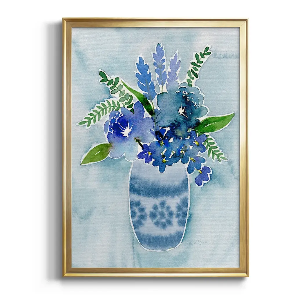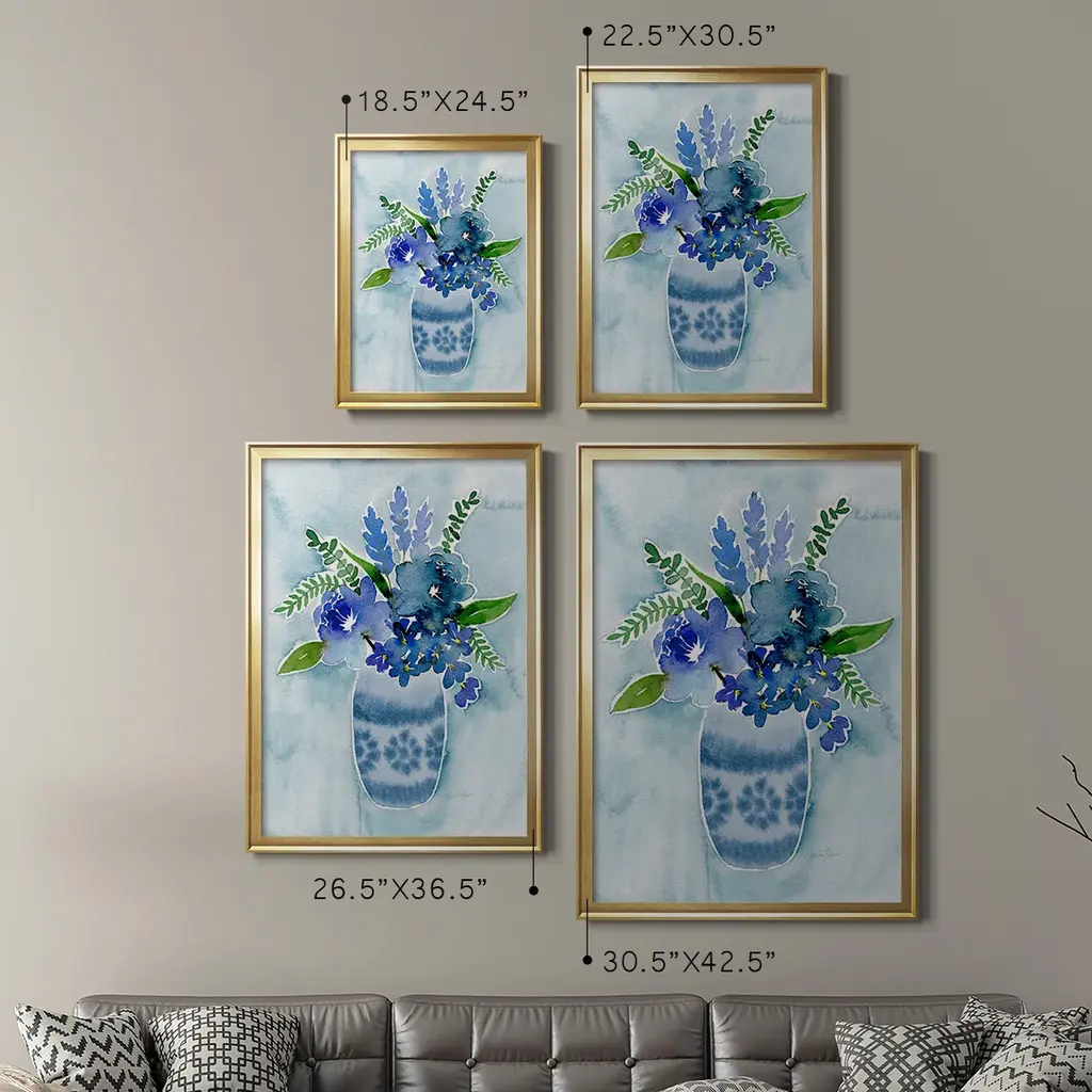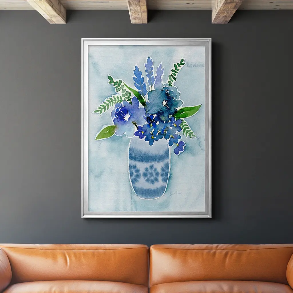 Blue Bouquet II Premium Framed Print - Ready to Hang A Premium Framed Print created to last. Framed in distressed wood and available in an array of sizes and colors Featuring a beveled a solid wood stretcher bar, each piece comes ready to hand 4 SIZES AVAILABLE 30.5''X42.5'' - Overall Size 26.5'X36.5'' - Overall Size 22.5''x30.5'' - Overall Size 18.5''x24.5'' - Overall Size Each piece is made to order. Each piece comes with hanging hardware. Made in the USA Ready to Hang