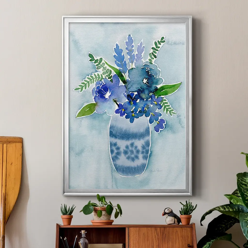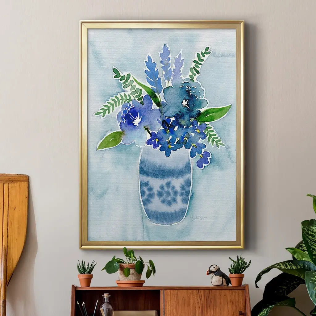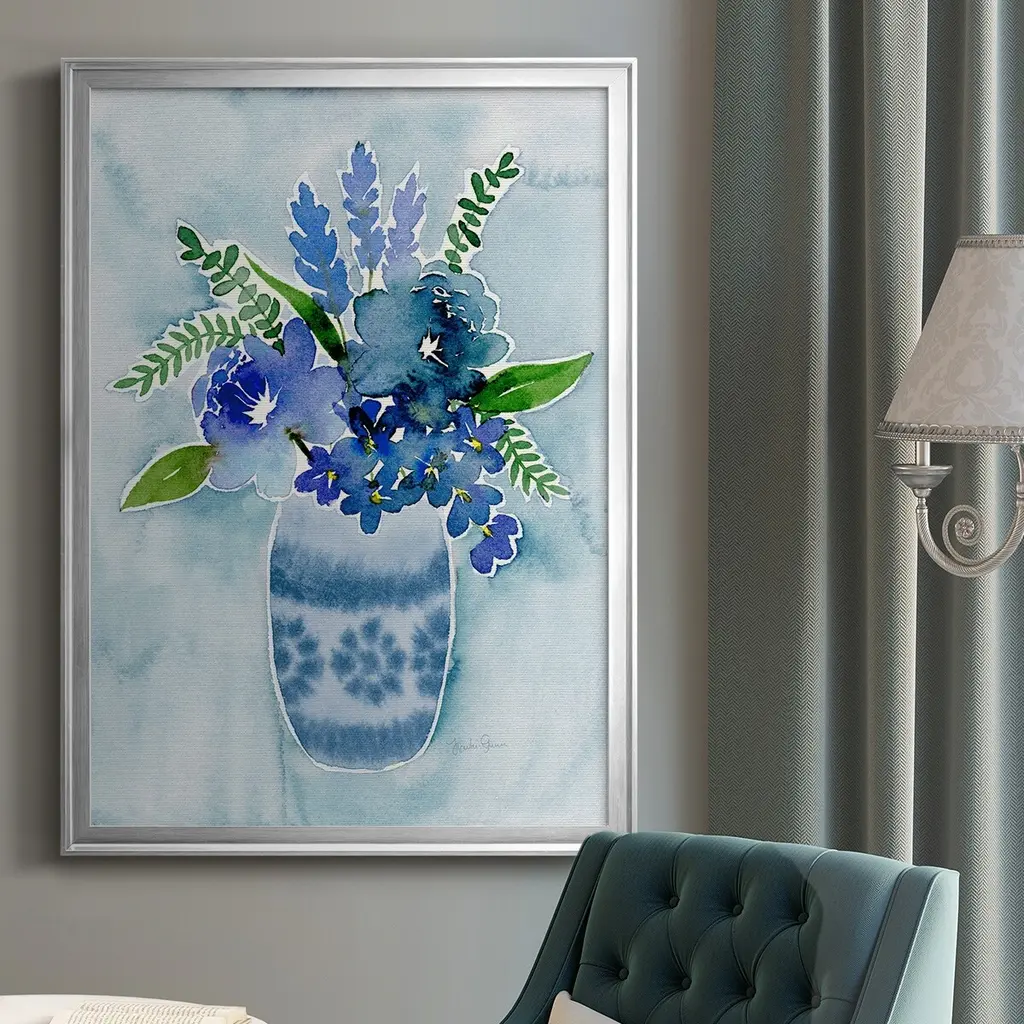 Blue Bouquet II Premium Framed Print - Ready to Hang A Premium Framed Print created to last. Framed in distressed wood and available in an array of sizes and colors Featuring a beveled a solid wood stretcher bar, each piece comes ready to hand 4 SIZES AVAILABLE 30.5''X42.5'' - Overall Size 26.5'X36.5'' - Overall Size 22.5''x30.5'' - Overall Size 18.5''x24.5'' - Overall Size Each piece is made to order. Each piece comes with hanging hardware. Made in the USA Ready to Hang