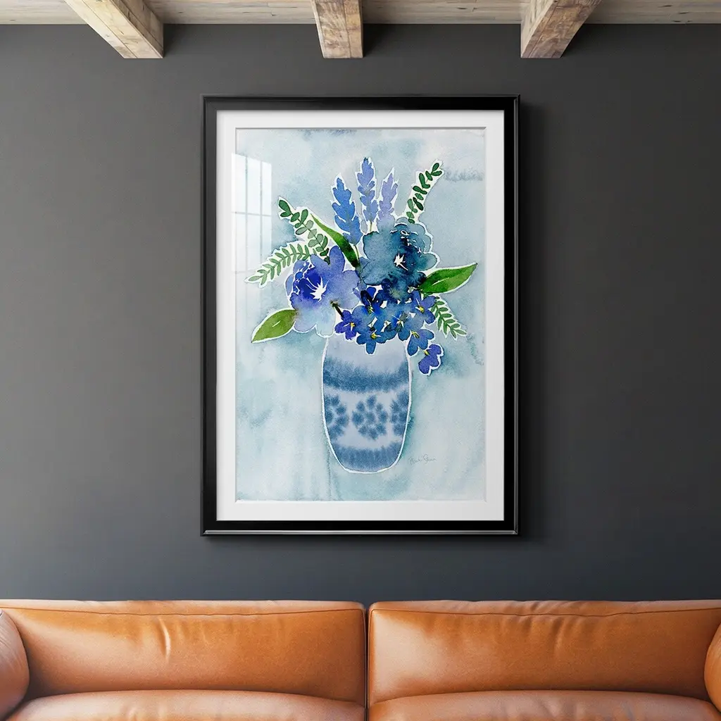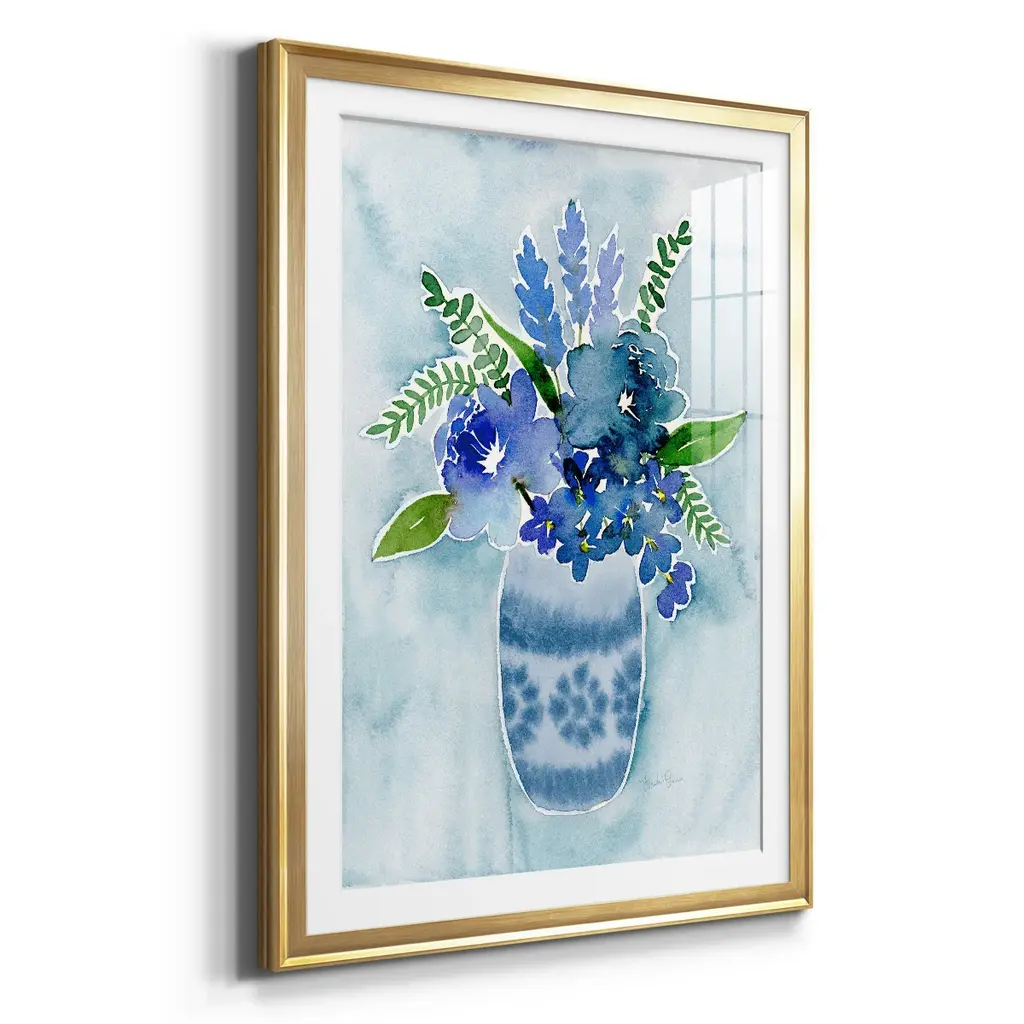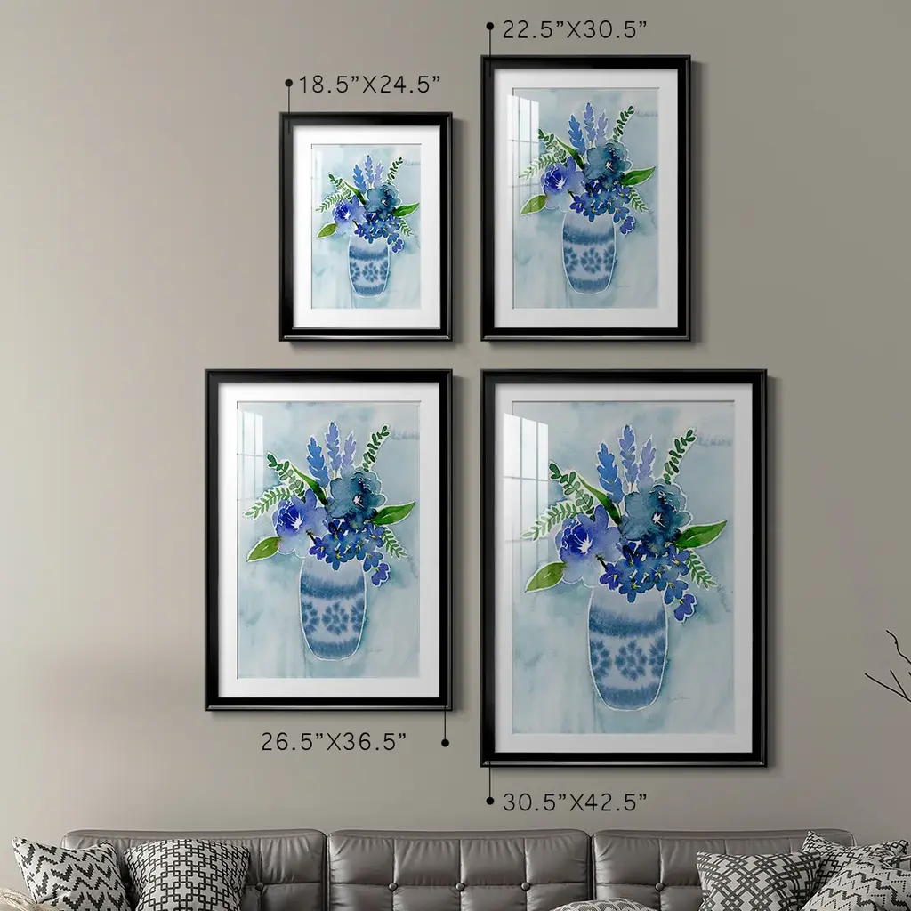 Blue Bouquet II Premium Framed Print - Ready to Hang A Premium Framed Print created to last. Framed in distressed wood and available in an array of sizes and colors Featuring a beveled a solid wood stretcher bar, each piece comes ready to hand 4 SIZES AVAILABLE 30.5''X42.5'' - Overall Size 26.5'X36.5'' - Overall Size 22.5''x30.5'' - Overall Size 18.5''x24.5'' - Overall Size Each piece is made to order. Each piece comes with hanging hardware. Made in the USA Ready to Hang Giclee Paper Print Acrylic Glass Beveled Matt Board