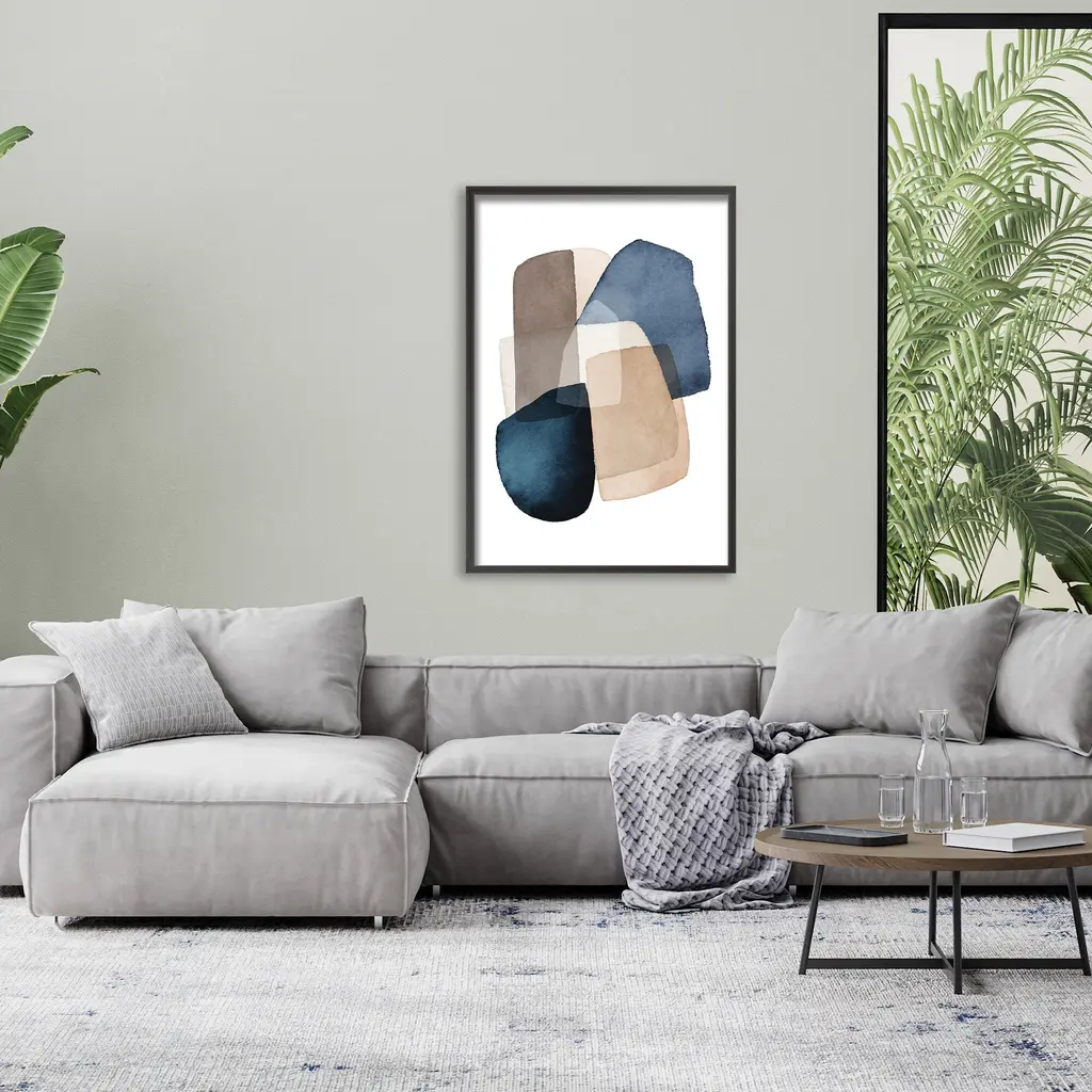 Infuse any space with the essence of this trendy framed print wall art titled "Blue Brown Blocks" by Kathrin Pienaar. The piece features elegant abstract shapes in shades of brown and blue that will complement any modern space. Handcrafted in Chattanooga, Tennessee, by Ready2HangArt using a locally sourced artist print, finished with a rear hanger for simple installation.