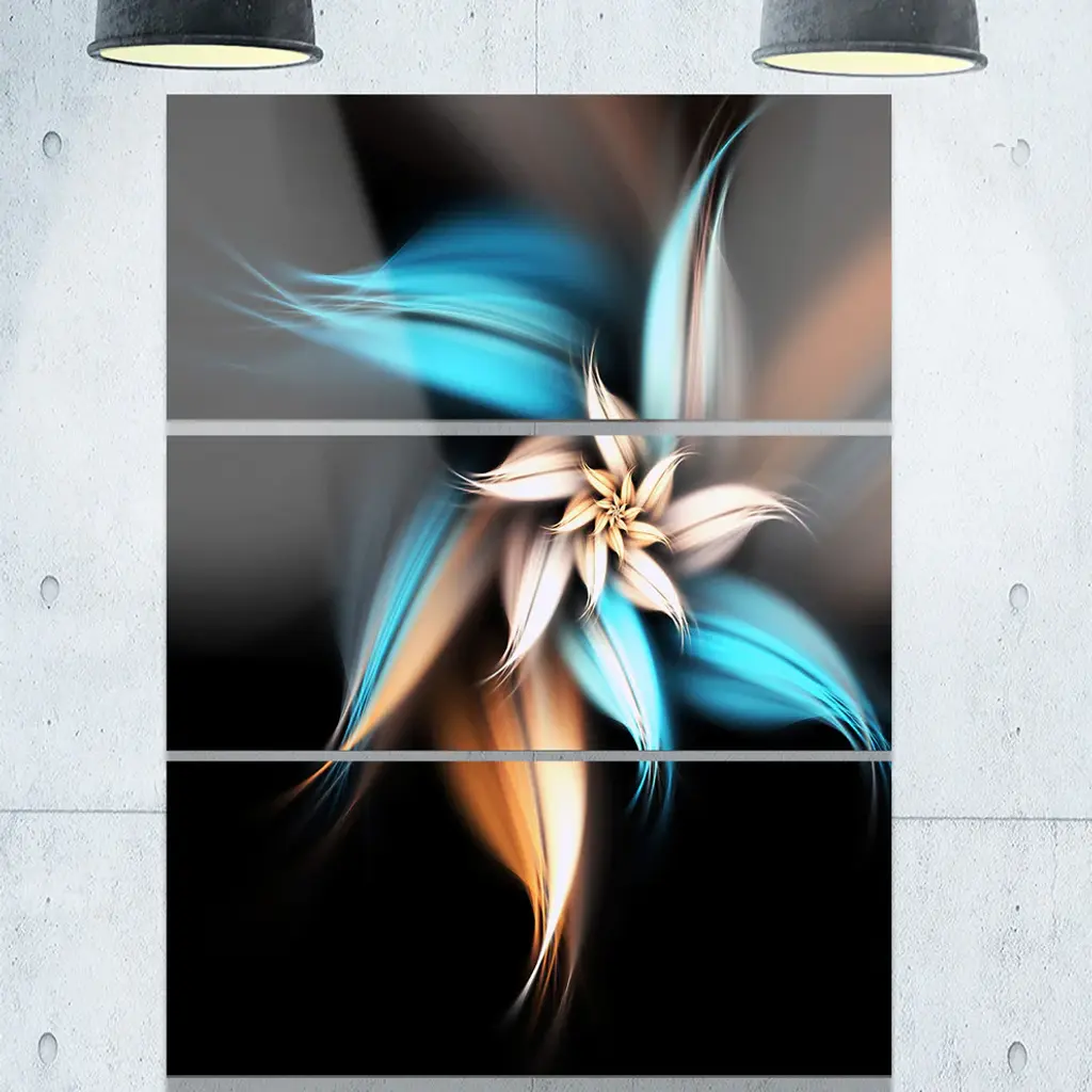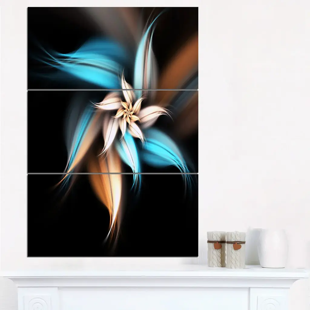 "Blue Brown Digital Art Fractal Flower" Metal Wall Art, 3 Panels, 28"x36"