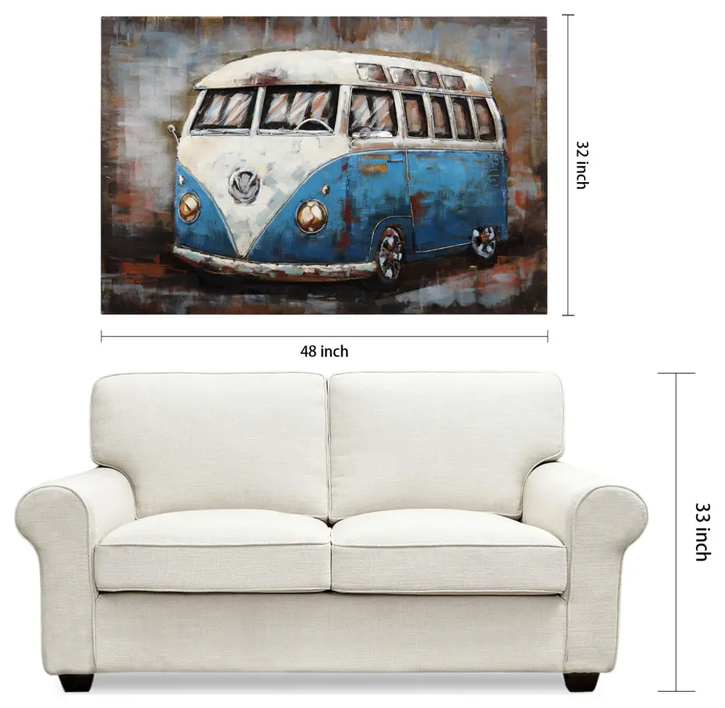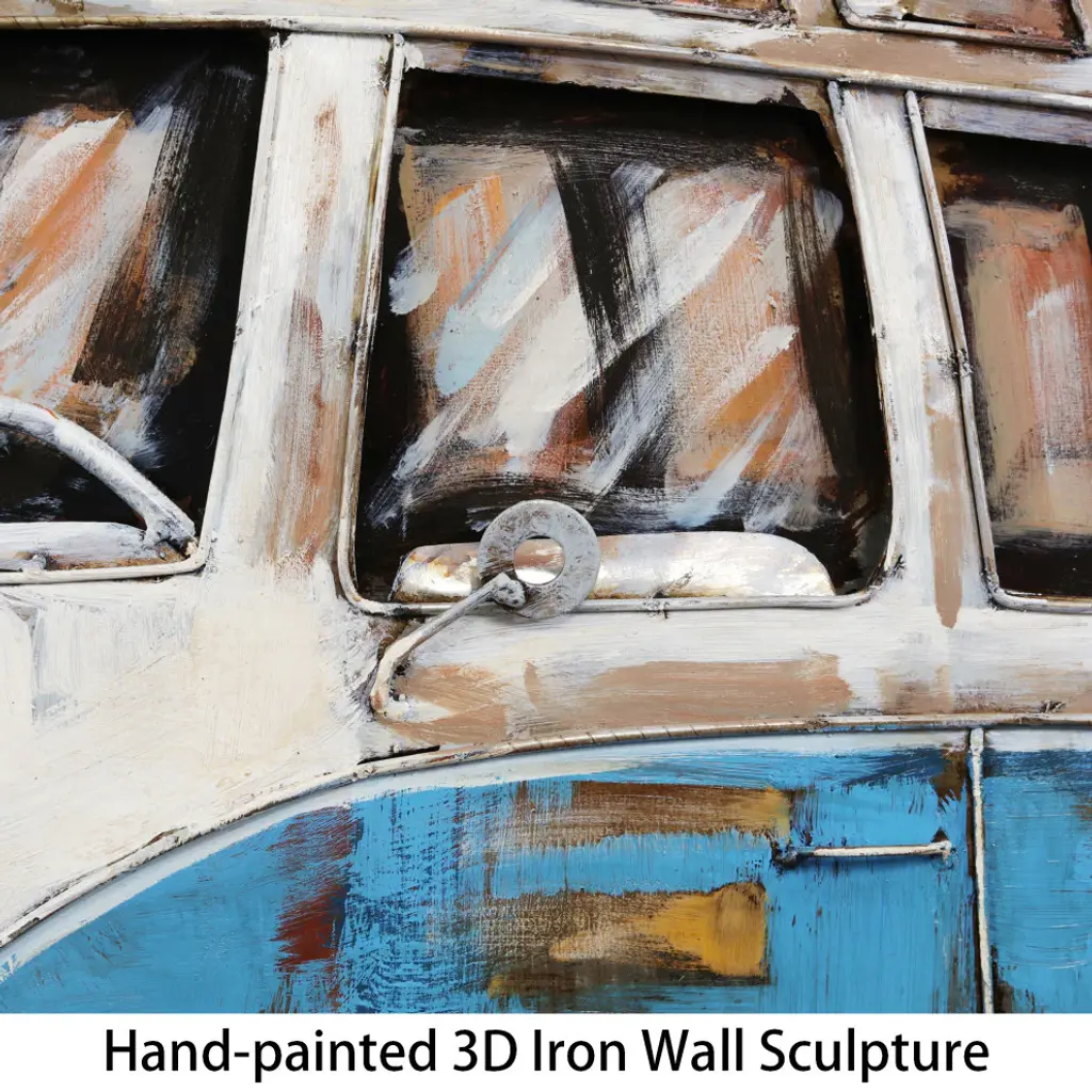 "Blue Bus" Wall Art Mixed Media Iron Hand Painted Dimensional Wall Sculpture