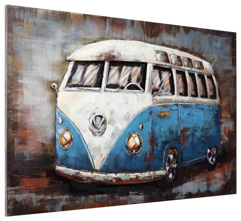 Empire Art Direct and their exclusive artist Primo are proud to present this three-dimensional, iron, mixed media wall sculpture. These individual unique originals are hand painted and signed works of art that are renown for Primo''s skills of manipulating iron into a textured work of art with extraordinary depth and skill. This 3D sculpture of classic blue bus can be presented outdoors if it is varnished every year, as it will take on a patina characteristic that is inherent in its presentation.