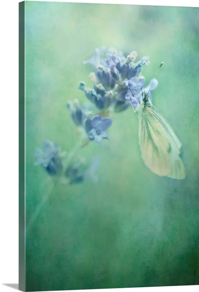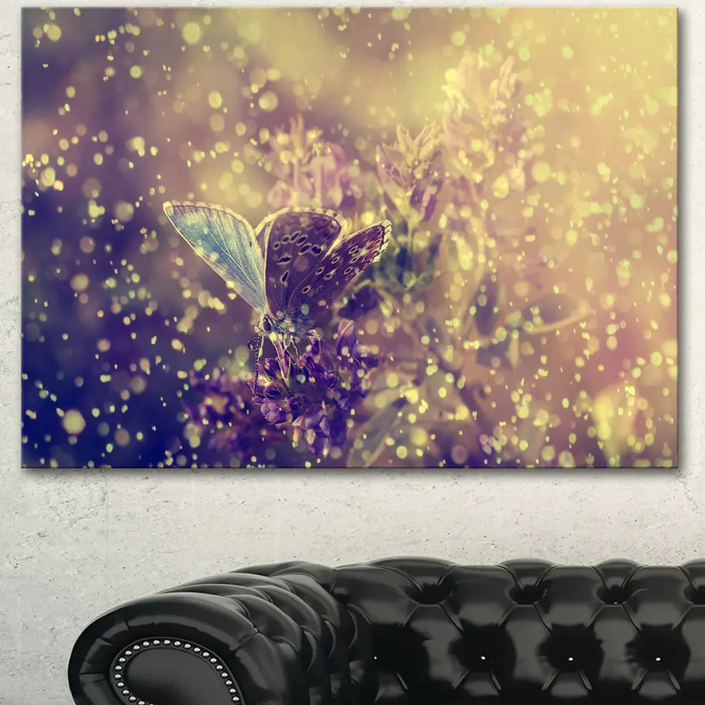 Blue Butterfly And Purple Flowers, Large Floral Canvas Art Print, 60"x28"