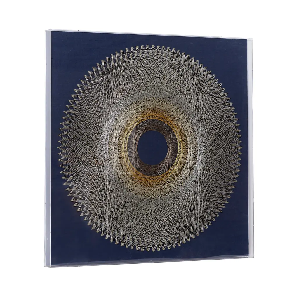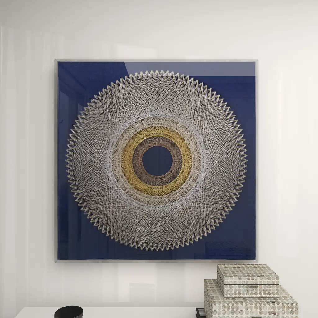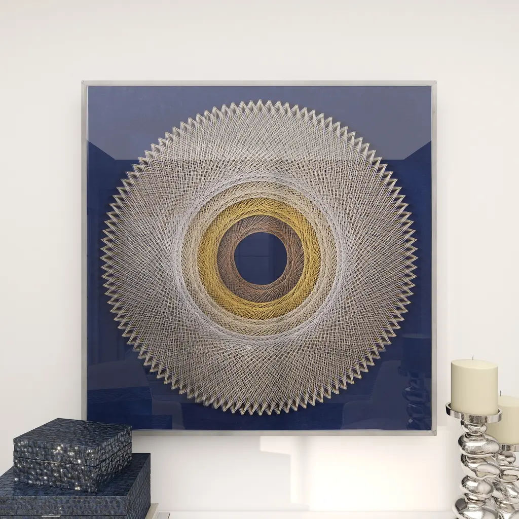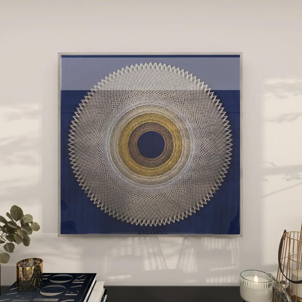 Blue Canvas Handmade Circular String Art Geometric Shadow Box With Canvas Backing - 36 X 2 X 36 - 36 X 2 X 36