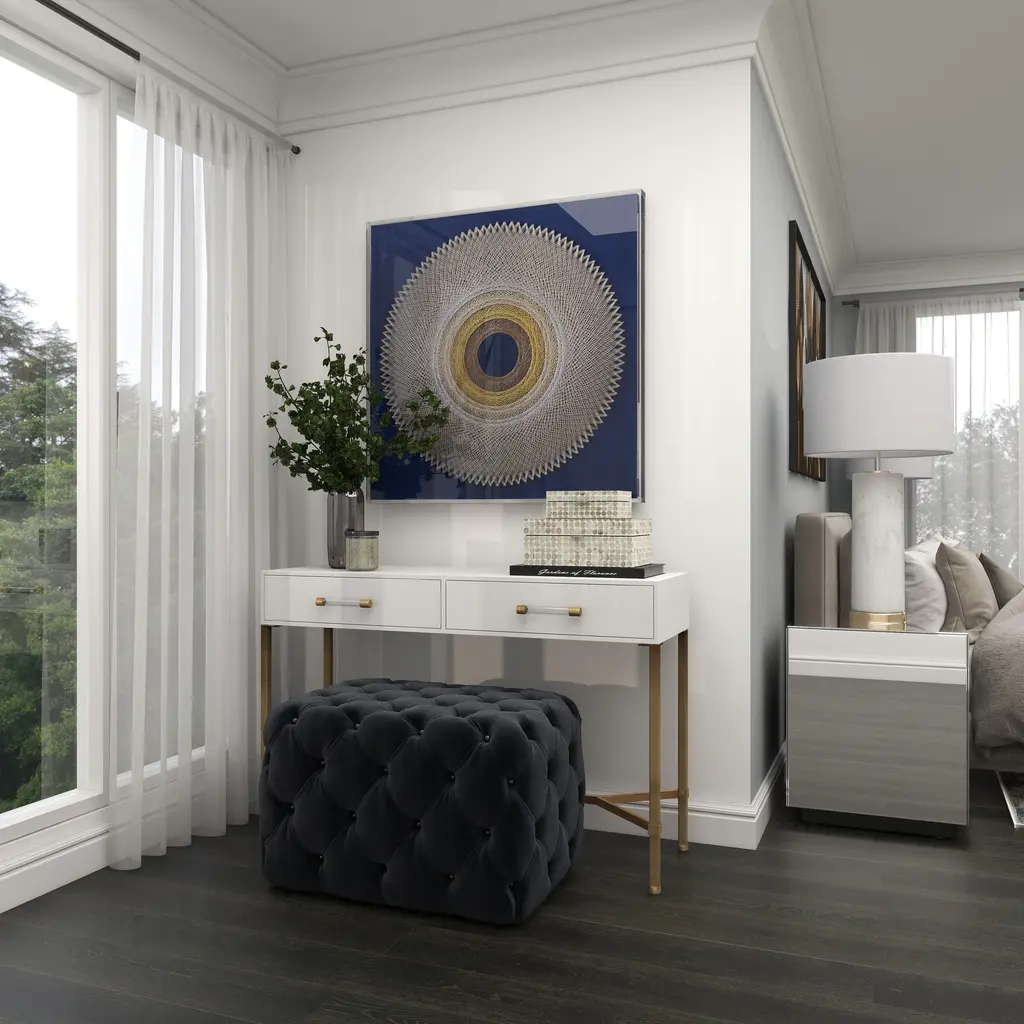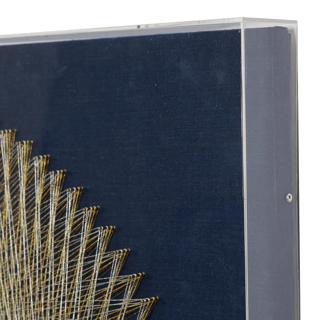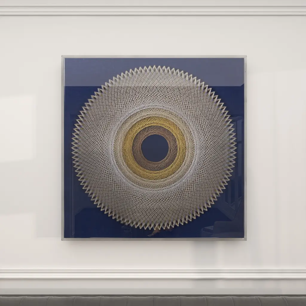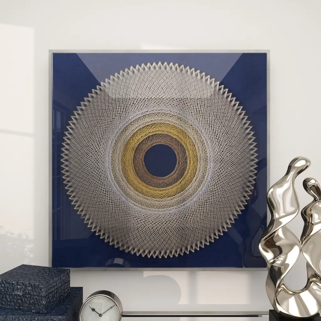 Blue Canvas Handmade Circular String Art Geometric Shadow Box With Canvas Backing - 36 X 2 X 36 - 36 X 2 X 36