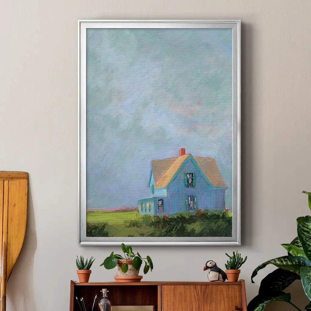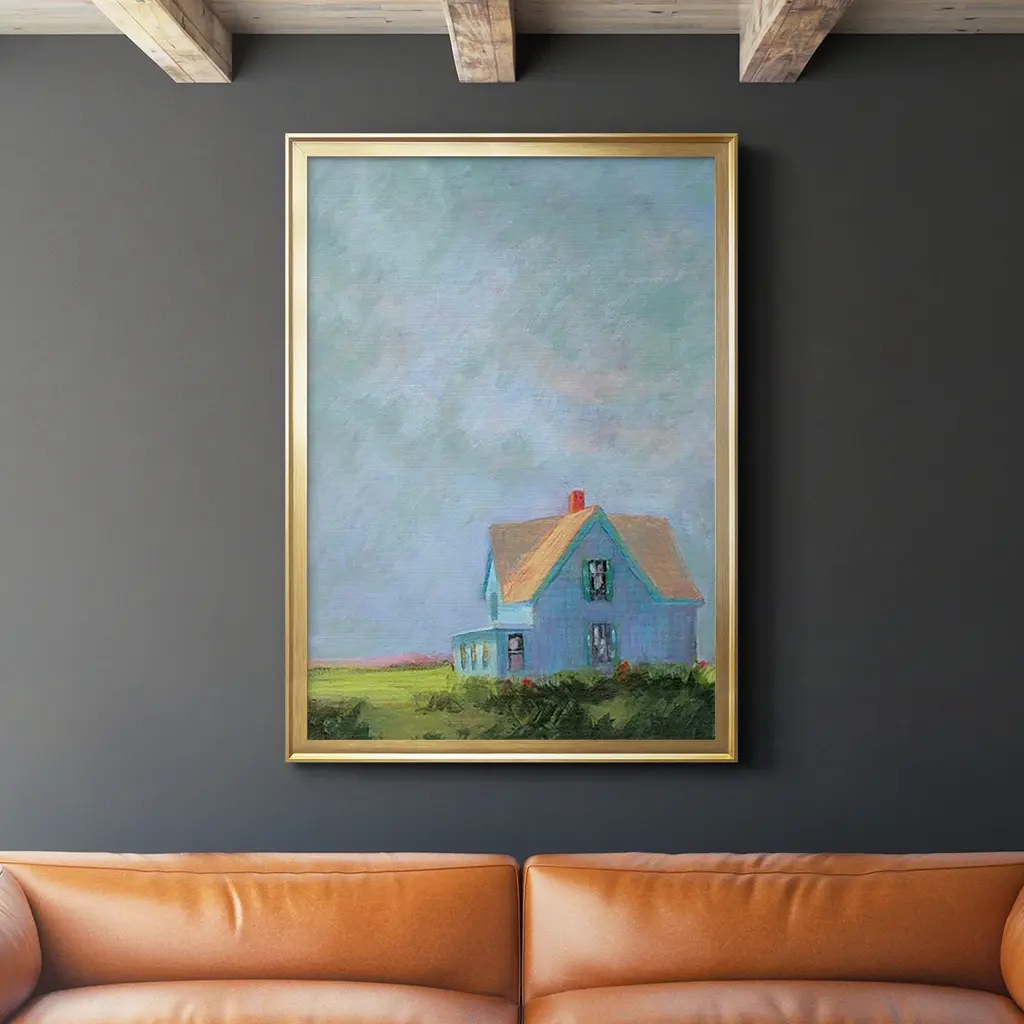 Blue Cape Premium Framed Print - Ready to Hang A Premium Framed Print created to last. Framed in distressed wood and available in an array of sizes and colors Featuring a beveled a solid wood stretcher bar, each piece comes ready to hand 4 SIZES AVAILABLE 30.5''X42.5'' - Overall Size 26.5'X36.5'' - Overall Size 22.5''x30.5'' - Overall Size 18.5''x24.5'' - Overall Size Each piece is made to order. Each piece comes with hanging hardware. Made in the USA Ready to Hang