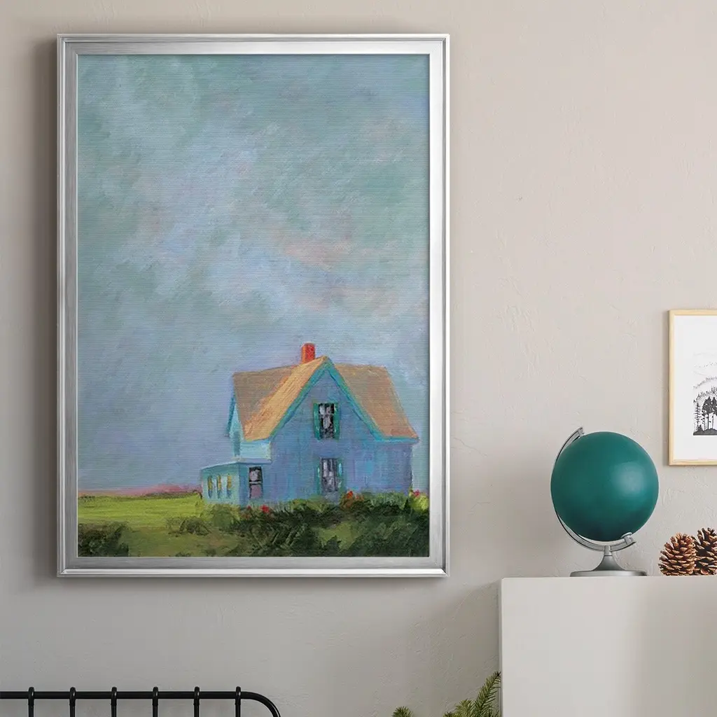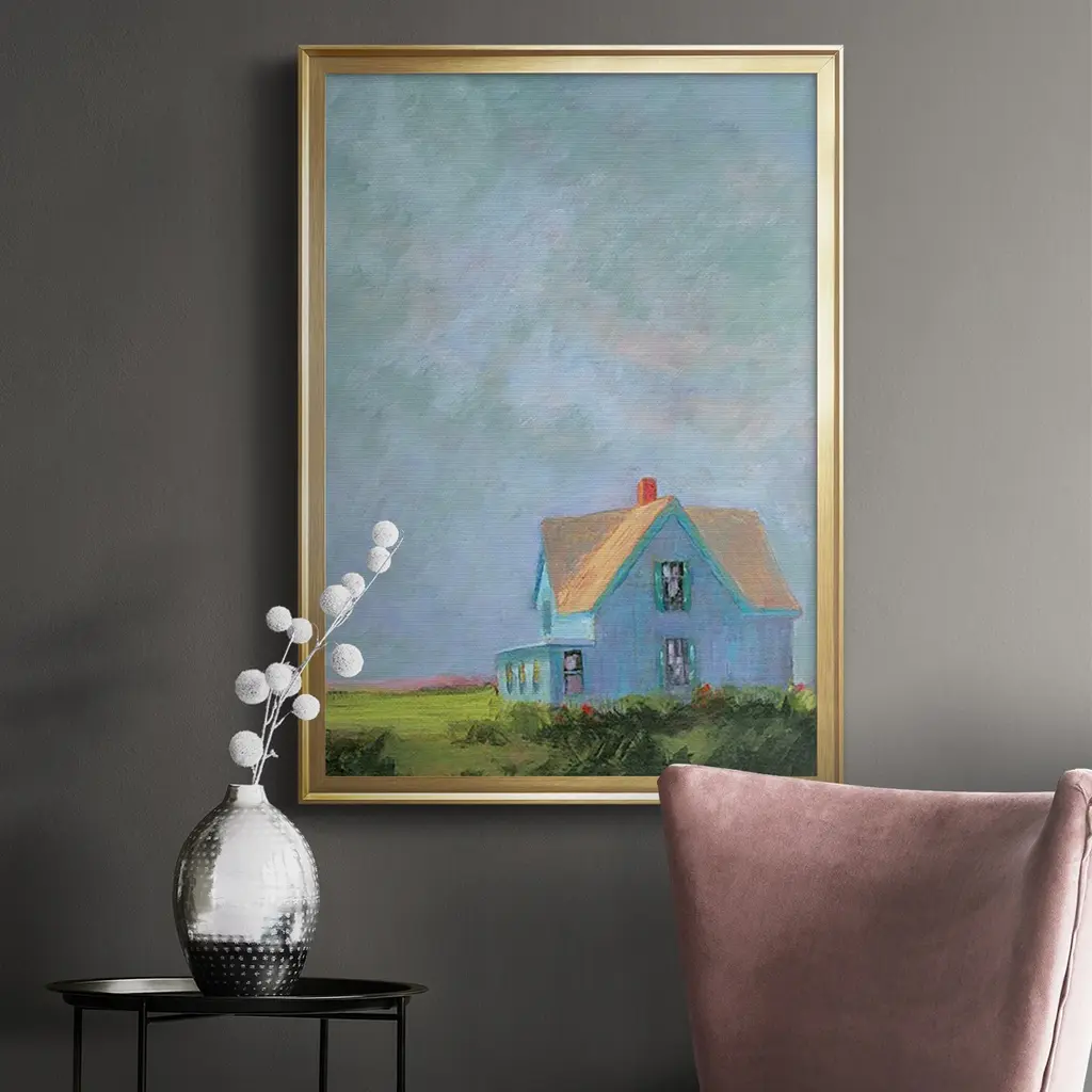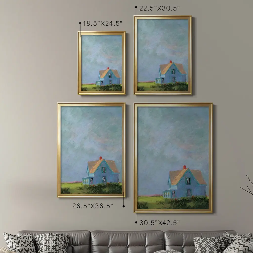Blue Cape Premium Framed Print - Ready to Hang A Premium Framed Print created to last. Framed in distressed wood and available in an array of sizes and colors Featuring a beveled a solid wood stretcher bar, each piece comes ready to hand 4 SIZES AVAILABLE 30.5''X42.5'' - Overall Size 26.5'X36.5'' - Overall Size 22.5''x30.5'' - Overall Size 18.5''x24.5'' - Overall Size Each piece is made to order. Each piece comes with hanging hardware. Made in the USA Ready to Hang