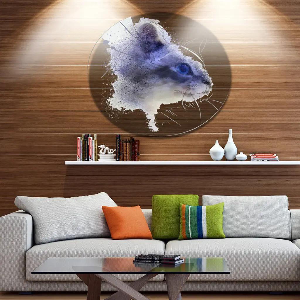 Bring Contemporary Abstraction to your home with this large Circle Metal wall art. This Blue Cat Face Watercolor Sketch Metal Artwork makes it the focal point of any room or office. - White Gloss Coating ensures colors are extra vibrant with light reflection.- Aluminum grade Sheet Metal with 1 inch mounting frame on the back giving the illusion that the artwork is floating on the wall..- Mounting Brackets are included along with instructions.- High Quality Digital images are created directly into a glossy aluminum panel producing a stunning and captivating print into the glossy finish of the metal.- Water, Fire and Scratch resistant HD Aluminum panels.- Looks better than any photo paper and guaranteed to last at least 20 years- Easy to clean with a microfiber cloth. Colors are far superior to regular Canvas Art. - Easy to Hang