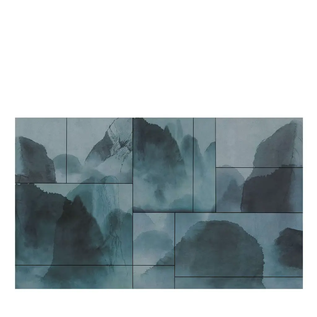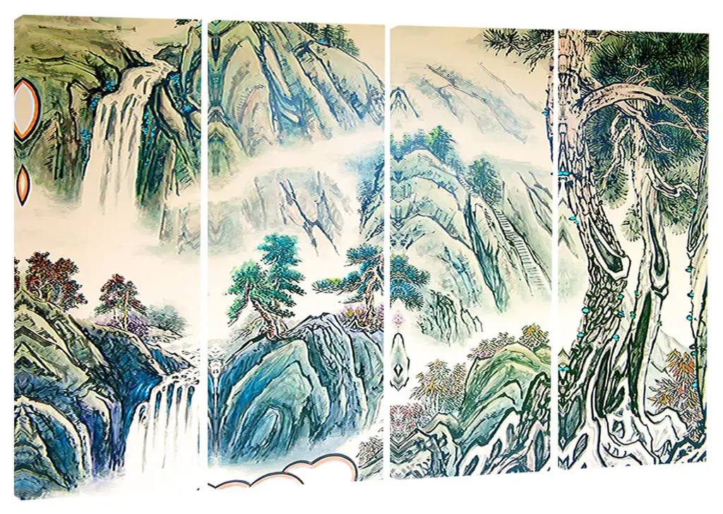 "Blue Chinese Landscape Painting" Canvas Print, 4 Panels, 48"x28"