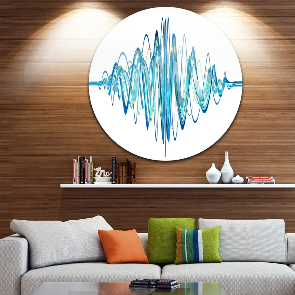 Blue Circled Waves, Abstract Digital Art Large Disc Metal Wall Art, 23"