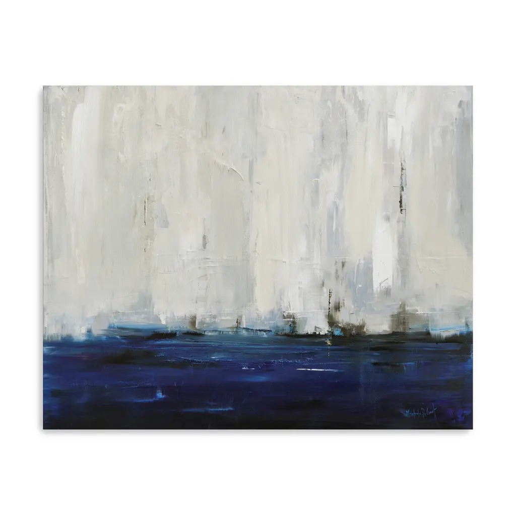 Transform your living space with this mesmerizing blue abstract landscape canvas art "Blue City" by Michele Renee Gort. Featuring a captivating blend of blue hues, this artwork brings a sense of tranquility and depth to any room. The abstract design evokes a serene landscape, making it a perfect addition to both contemporary and classic interiors. Available in black frame, dark walnut frame, oak frame, or as a wrapped canvas. Our Gallery Wrap Canvas Prints are proudly assembled with high quality materials in California, USA. Each piece is printed on a thick, archival grade canvas using Giclee technology. It is then hand-stretched by our experienced artisans over solid wood bars, which will not warp over time. The final product is a piece personally crafted for you to confidently display on your wall. Care and Assembly: Ensure that the location of your piece has little to no exposure to heat, sunlight, and moisture. Wipe clean, only if needed. Each piece includes a sawtooth hanger to hang on your wall horizontally.