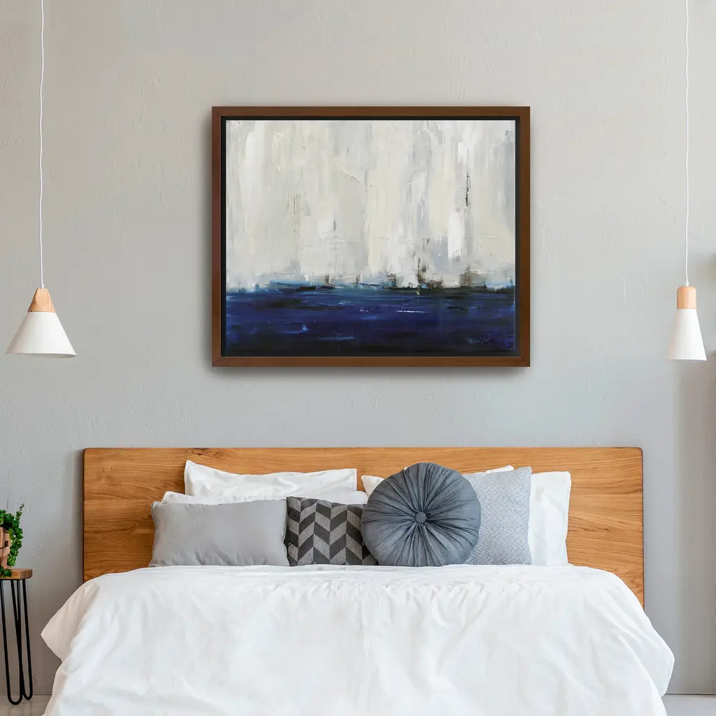 Transform your living space with this mesmerizing blue abstract landscape canvas art "Blue City" by Michele Renee Gort. Featuring a captivating blend of blue hues, this artwork brings a sense of tranquility and depth to any room. The abstract design evokes a serene landscape, making it a perfect addition to both contemporary and classic interiors. Available in black frame, dark walnut frame, oak frame, or as a wrapped canvas. Our Gallery Wrap Canvas Prints are proudly assembled with high quality materials in California, USA. Each piece is printed on a thick, archival grade canvas using Giclee technology. It is then hand-stretched by our experienced artisans over solid wood bars, which will not warp over time. The final product is a piece personally crafted for you to confidently display on your wall. Care and Assembly: Ensure that the location of your piece has little to no exposure to heat, sunlight, and moisture. Wipe clean, only if needed. Each piece includes a sawtooth hanger to hang on your wall horizontally.