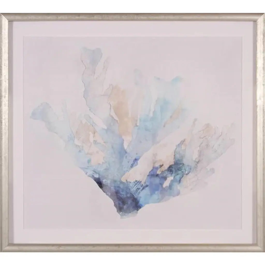 With superior giclee quality, the image of a blue coral watercolor painting is featured on this mesmerizing wall art and is complimented with a silver flake wood frame. Consider pairing with 7320 for a eye-catching presentation.