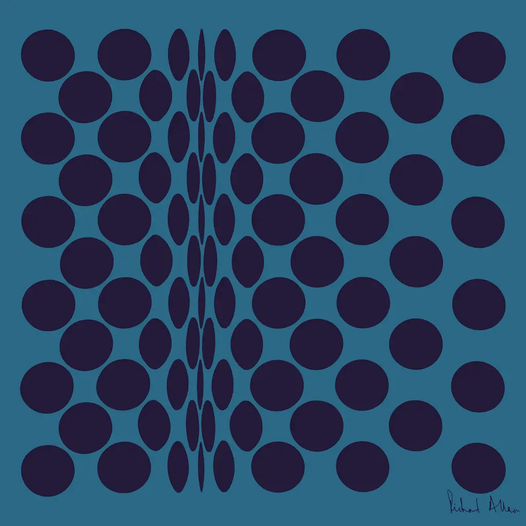 See ripples as you move past, glance from another angle, the flow changes, op art, peacefully in Marine Blue, or packing a pop art punch with Pink, then again smartly in contrast with Spice.A limited edition print /100, numbered and signed on museum etching paper, embossed with the Richard Allan London company seal. This design is a 1960s-70s original archive design from Richard Allan London and is made in England.Unframed