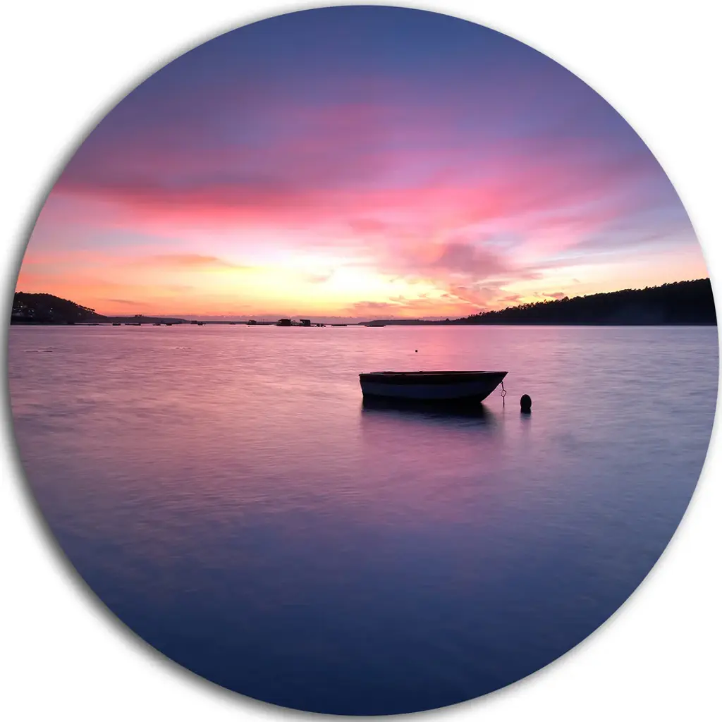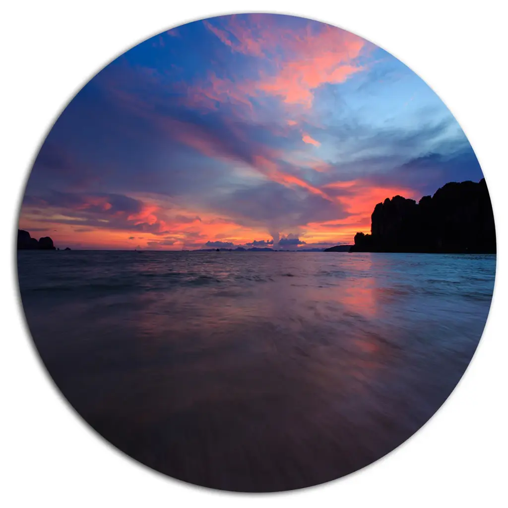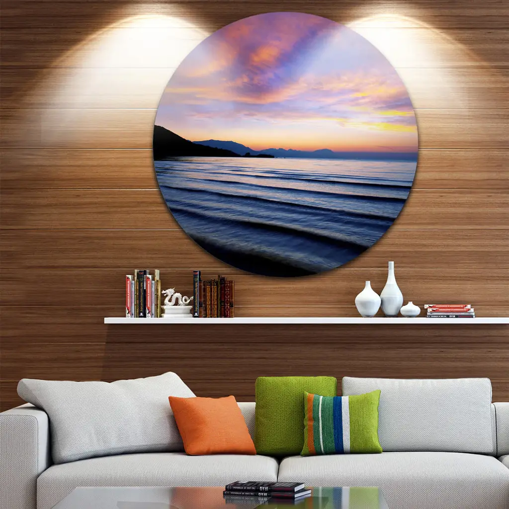Bring Contemporary Abstraction to your home with this large Circle Metal wall art. This Blue Dramatic Sky over Layered Waves Metal Artwork makes it the focal point of any room or office. - White Gloss Coating ensures colors are extra vibrant with light reflection.- Aluminum grade Sheet Metal with 1 inch mounting frame on the back giving the illusion that the artwork is floating on the wall..- Mounting Brackets are included along with instructions.- High Quality Digital images are created directly into a glossy aluminum panel producing a stunning and captivating print into the glossy finish of the metal.- Water, Fire and Scratch resistant HD Aluminum panels.- Looks better than any photo paper and guaranteed to last at least 20 years- Easy to clean with a microfiber cloth. Colors are far superior to regular Canvas Art. - Easy to Hang