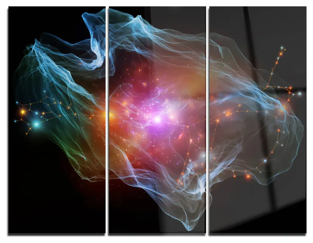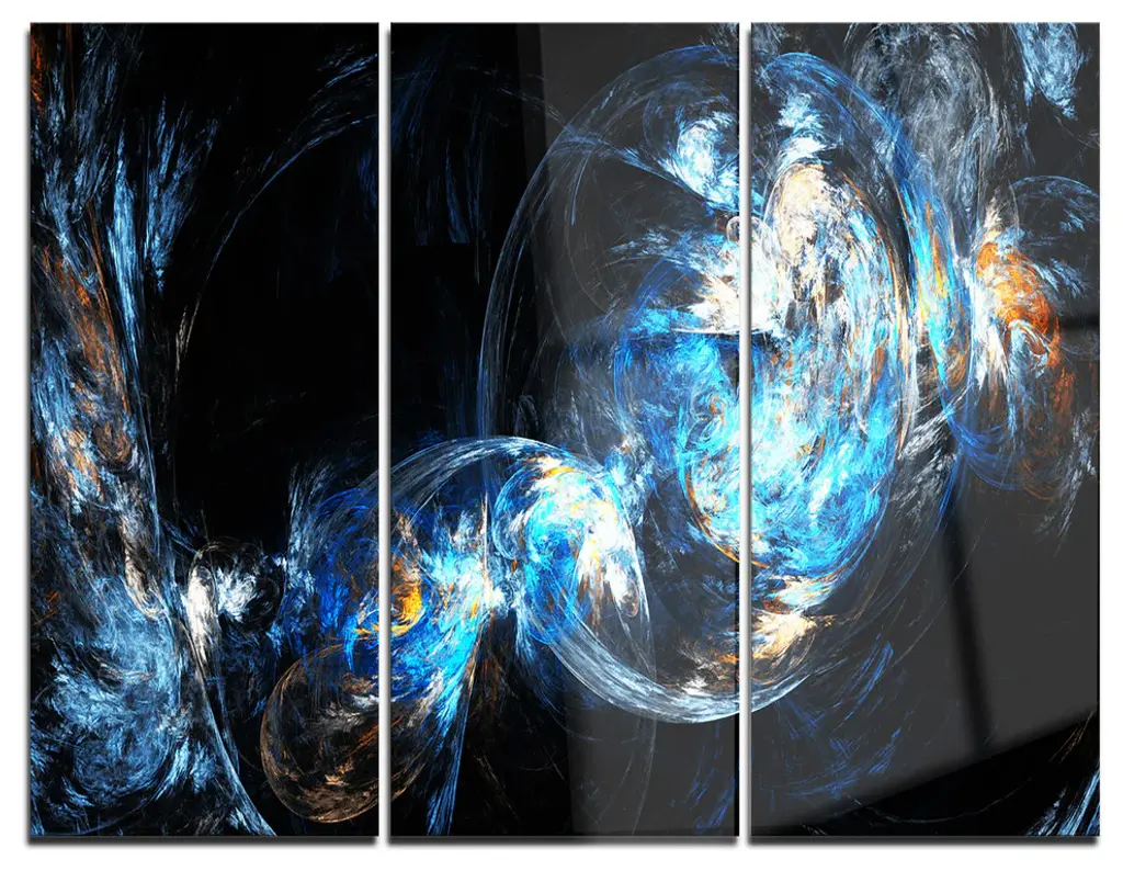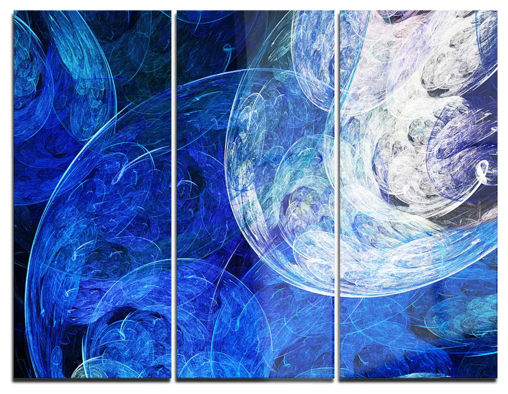 "Blue Falling Snow" Abstract Digital Art Canvas Print, 4 Panels