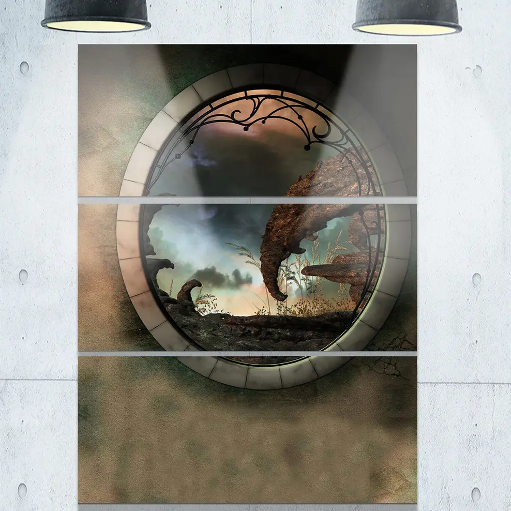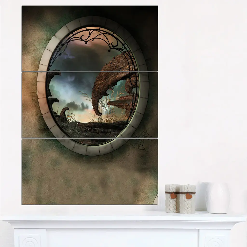 "Blue Fantasy Landscape With Frame" Photo Metal Wall Art, 3 Panels, 28"x36"