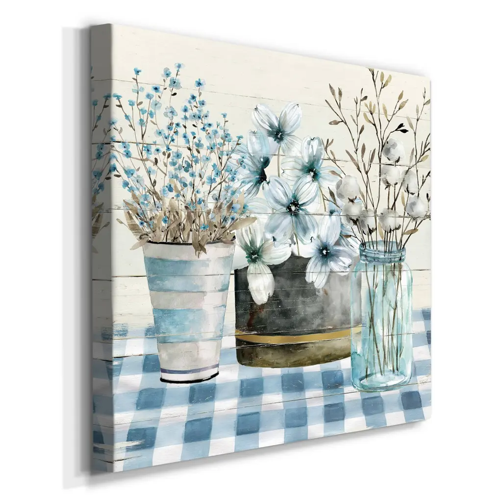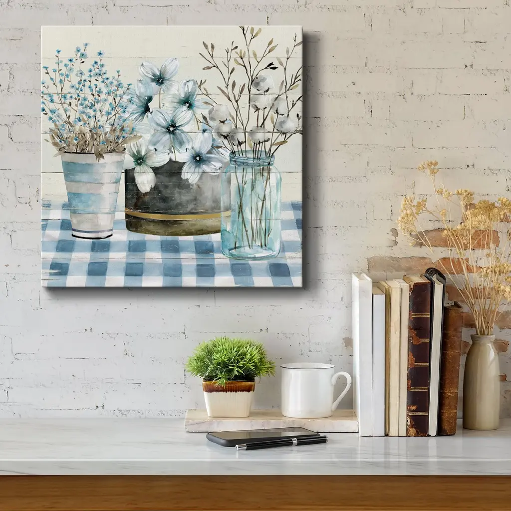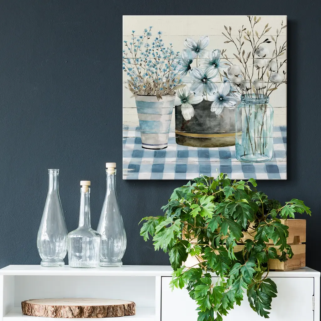 Blue Farmhouse-Premium Gallery Wrapped Canvas - Ready to Hang A premium hand stretched gallery wrapped canvas print created to last. Featuring a beveled a solid wood stretcher bar, each piece comes ready to hand 5 SIZES AVAILABLE 10''X10'' - Overall Size 16''x16'' - Overall Size 24''x24'' - Overall Size 32''x32'' - Overall Size 40''x40'' - Overall Size Each piece is made to order. Built to Last Each piece comes ready to hang Solid wood stretcher Fade and Water resistant Made domestically