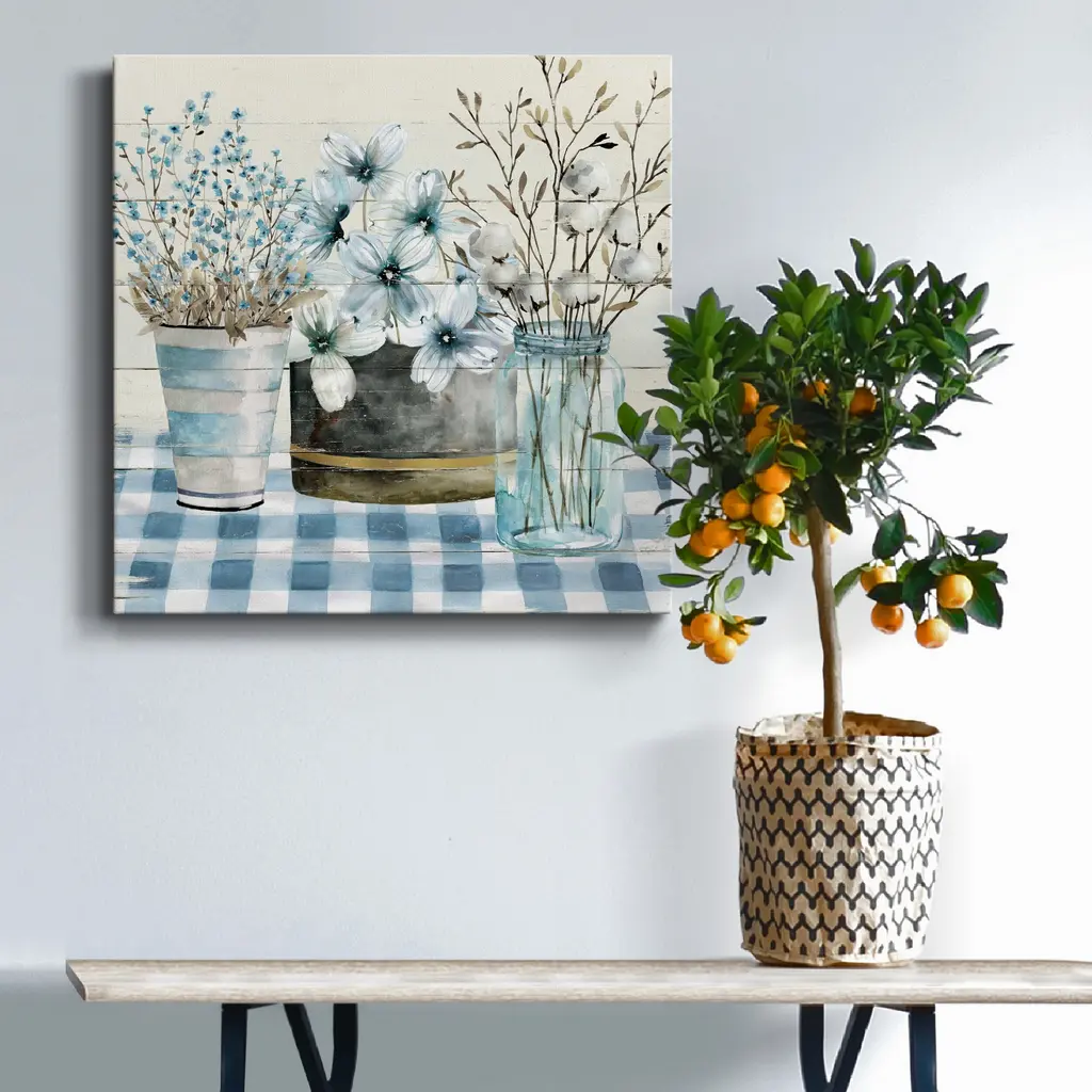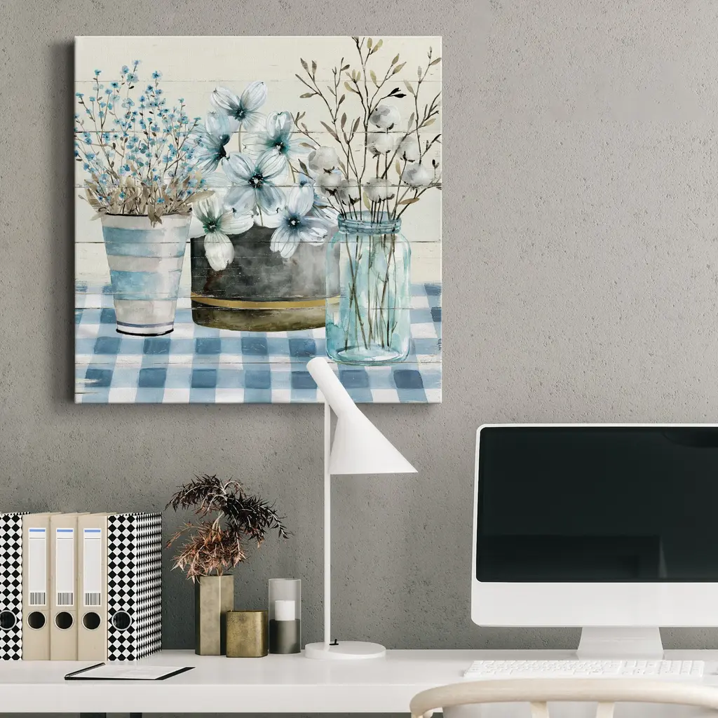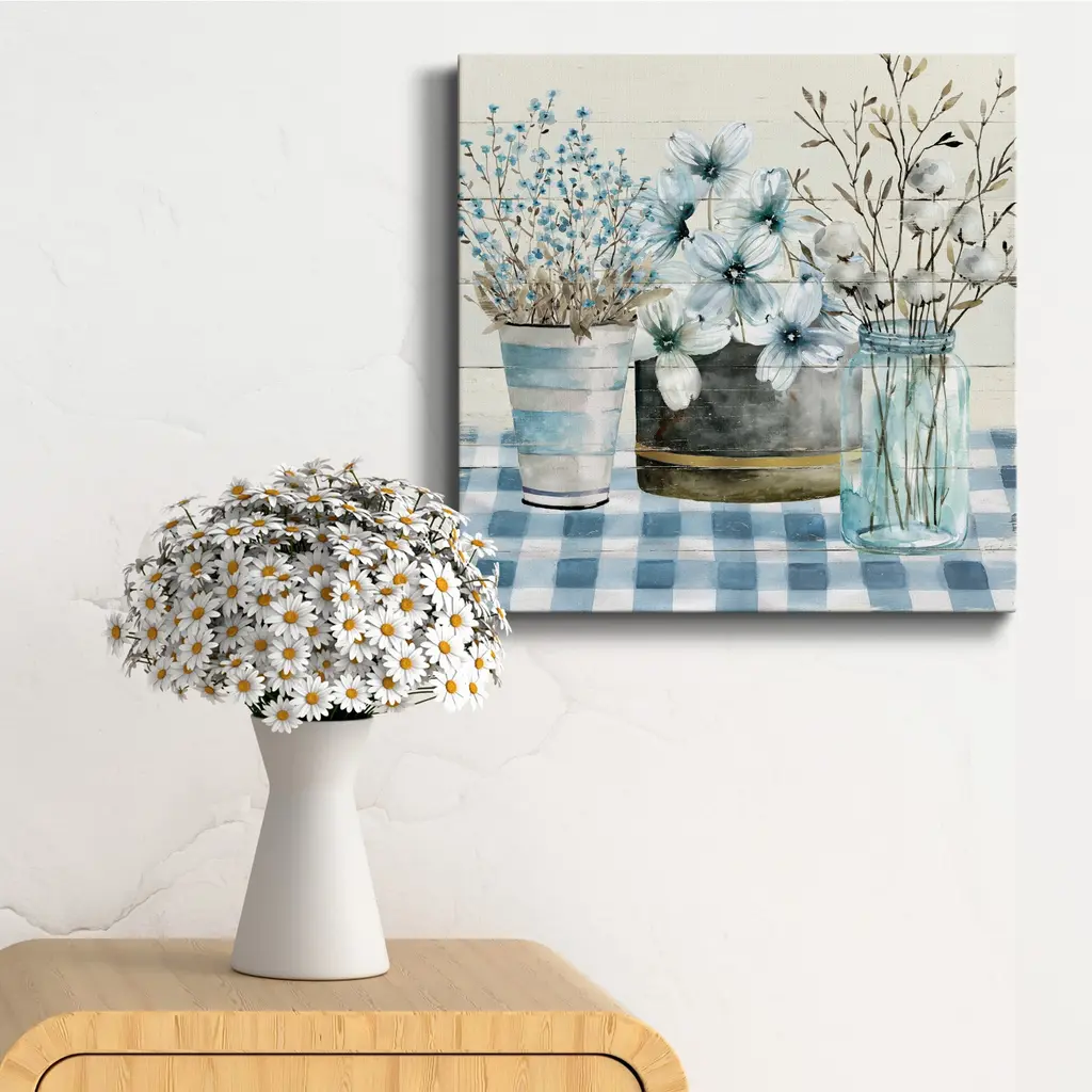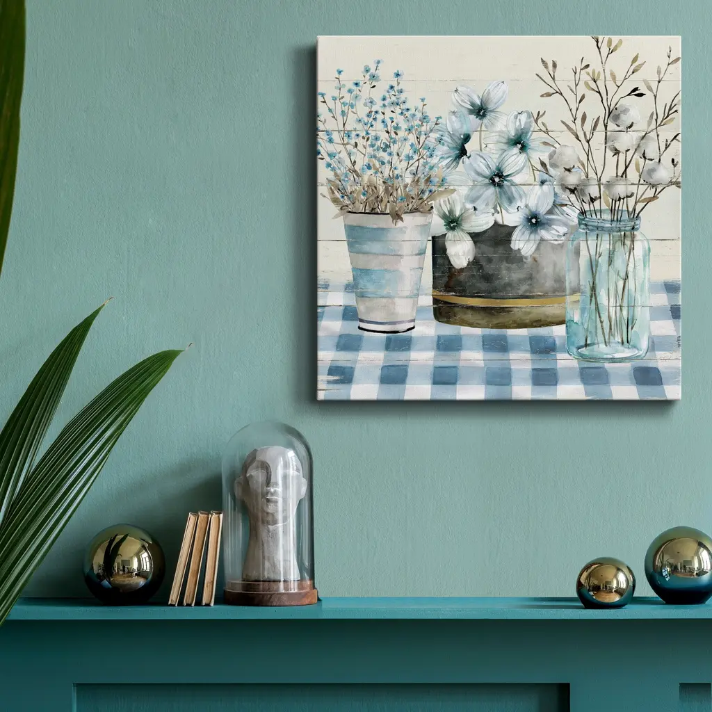 Blue Farmhouse-Premium Gallery Wrapped Canvas - Ready to Hang A premium hand stretched gallery wrapped canvas print created to last. Featuring a beveled a solid wood stretcher bar, each piece comes ready to hand 5 SIZES AVAILABLE 10''X10'' - Overall Size 16''x16'' - Overall Size 24''x24'' - Overall Size 32''x32'' - Overall Size 40''x40'' - Overall Size Each piece is made to order. Built to Last Each piece comes ready to hang Solid wood stretcher Fade and Water resistant Made domestically