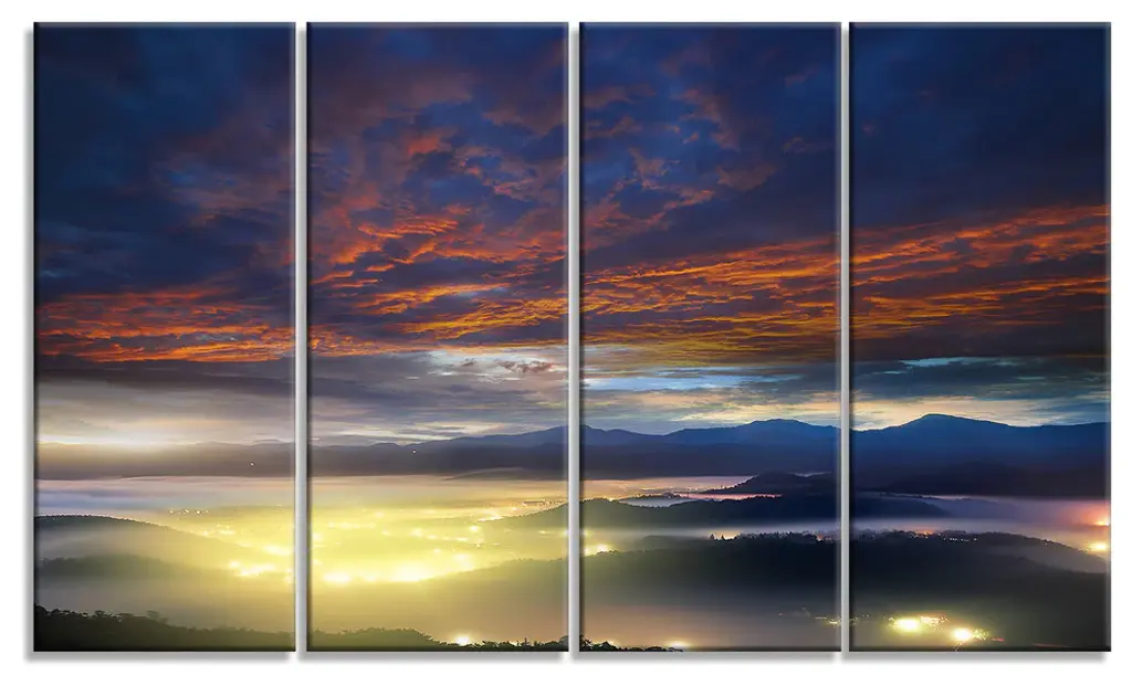 "Blue Fiery Overcast At Sunrise" Landscape Photo Wall Art, 4 Panels, 48"x28"