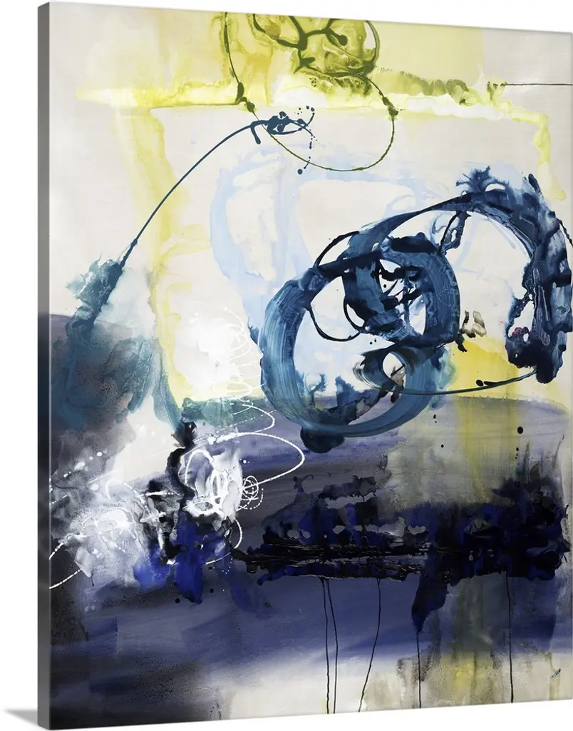 Contemporary abstract painting using wild and vivid colors to create movement and depth.