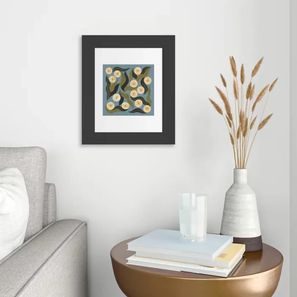 Our Art Prints and Framed Art Prints are custom printed and made-to-order, ensuring each piece is tailored to your space. Sizes vary by design, so always check the selected option for exact measurements. From extra small prints for accent styling to extra large framed art prints for statement walls, Society6 offers a wide range of dimensions to suit any room.Art Prints:100% cotton, acid-free, museum-quality archival paper.Matte finish for rich, saturated colors.Gallery-quality ink for long-lasting vibrancy.Significantly thicker than standard posters.Made in the USA.Framed Art Prints:All frames include a premium, lightweight, shatterproof acrylic cover, and hanging hardware.Metal Frames: Brushed Anodized Aluminum (chip and peel-resistant).Wood Frames: A variety colors and styles available.Recessed Wood Frames: Shadowbox frame design creates a museum-like depth to your artwork.Available in four different hardwood frame colors (black, white, maple, walnut), with a smooth grain pattern finish that is modern and elegant.Made in the USA.Available Frame Sizes:X-Small (8" x 10") – perfect for shelves, desktops, or small wall accents.X-Small Square (10" x 10") – ideal for modern, compact gallery walls.Small (13" x 19") – versatile size that works well on its own or as part of a curated gallery wall.Medium Gallery Square (20" x 20") – balanced proportions, perfect for contemporary layouts.Medium Gallery (18" x 24") – a classic wall art size with high visual impact.Large (24" x 36") – bold and dramatic, ideal for focal-point wall art.X-Large (30" x 40") – oversized statement art print that anchors your space.X-Large Square (36" x 36") – striking modern square format for maximum impact.Glass & Acrylic Cleaning: Maintain clarity by regularly wiping down the glass or acrylic cover of your framed art print with a lint-free cloth and gentle glass cleaner.Frame Dusting: Use a soft, dry cloth to dust wood or metal frames, taking care not to press against the artwork surface.Avoid Moisture & Humidity: To protect your art prints and framed art prints from warping or mold, keep them away from high-humidity environments.Proper Hanging: Always hang your wall art level and away from direct heat sources or prolonged sunlight exposure to preserve color vibrancy and prevent damage.Eco-Friendly Materials: Our art prints and framed art prints are crafted on acid-free, museum-quality archival paper, designed to be both premium and environmentally responsible.Recycled Packaging: Every order is shipped in packaging made from recycled and recyclable materials, helping reduce waste.Locally Made in the USA: By producing our wall art in the USA, we minimize transportation emissions and lower our carbon footprint.Q: What makes Society6 Art Prints different from standard posters?A: Society6 Art Prints are printed on 100% cotton, acid-free, museum-quality archival paper that’s significantly thicker than standard posters. Combined with gallery-quality inks, they deliver vibrant colors and crisp details designed to last for years.Q: Do Framed Art Prints come ready to hang?A: Yes! All Framed Art Prints include a lightweight, shatterproof acrylic cover and hanging hardware, so they’re display-ready right out of the box.Q: Are the Art Prints custom made?A: Yes, all Society6 Art Prints and Framed Art Prints are custom printed and made-to-order. This ensures that every piece is produced with care and attention to detail just for you.Q: Do the prints come with a mat or border?A: Our Framed Art Prints feature a white border around the image for a gallery-style look, and recessed frames add extra depth for a museum-quality presentation.Q: How do I choose the right size for my space?A: Smaller sizes, like 8" x 10" and 10" x 10", are great for shelves, desks, or small wall accents. Medium and large sizes work well in gallery walls, while extra-large prints make bold focal points above sofas, beds, or in entryways.SHIPPING: Items are made to order and typically ship within 3-4 business days. Click here for more information about delivery options.RETURNS: Return requests can be made within 30 days of your item(s) delivery. Click here for more information on returns.