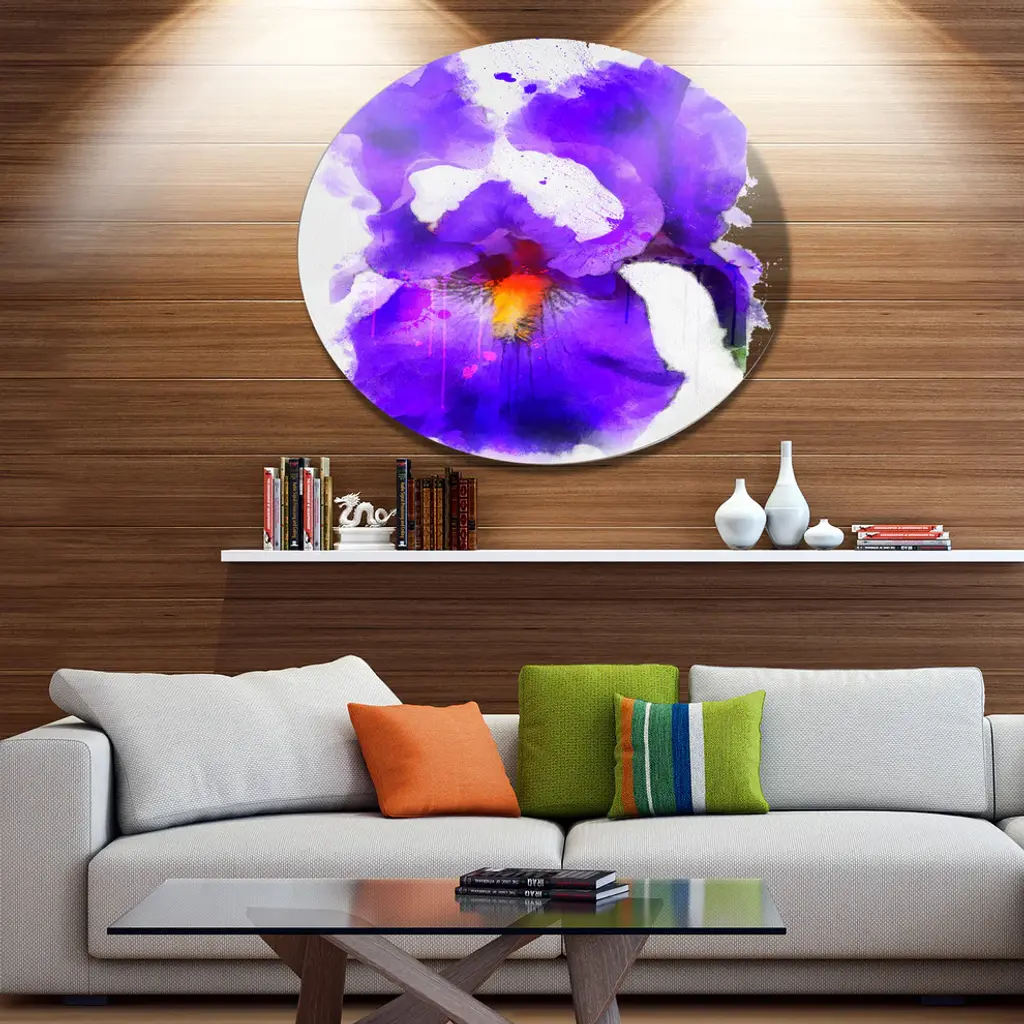 Bring Contemporary Abstraction to your home with this large Circle Metal wall art. This Blue Flower and Watercolor Splashes Metal Artwork makes it the focal point of any room or office. - White Gloss Coating ensures colors are extra vibrant with light reflection.- Aluminum grade Sheet Metal with 1 inch mounting frame on the back giving the illusion that the artwork is floating on the wall..- Mounting Brackets are included along with instructions.- High Quality Digital images are created directly into a glossy aluminum panel producing a stunning and captivating print into the glossy finish of the metal.- Water, Fire and Scratch resistant HD Aluminum panels.- Looks better than any photo paper and guaranteed to last at least 20 years- Easy to clean with a microfiber cloth. Colors are far superior to regular Canvas Art. - Easy to Hang
