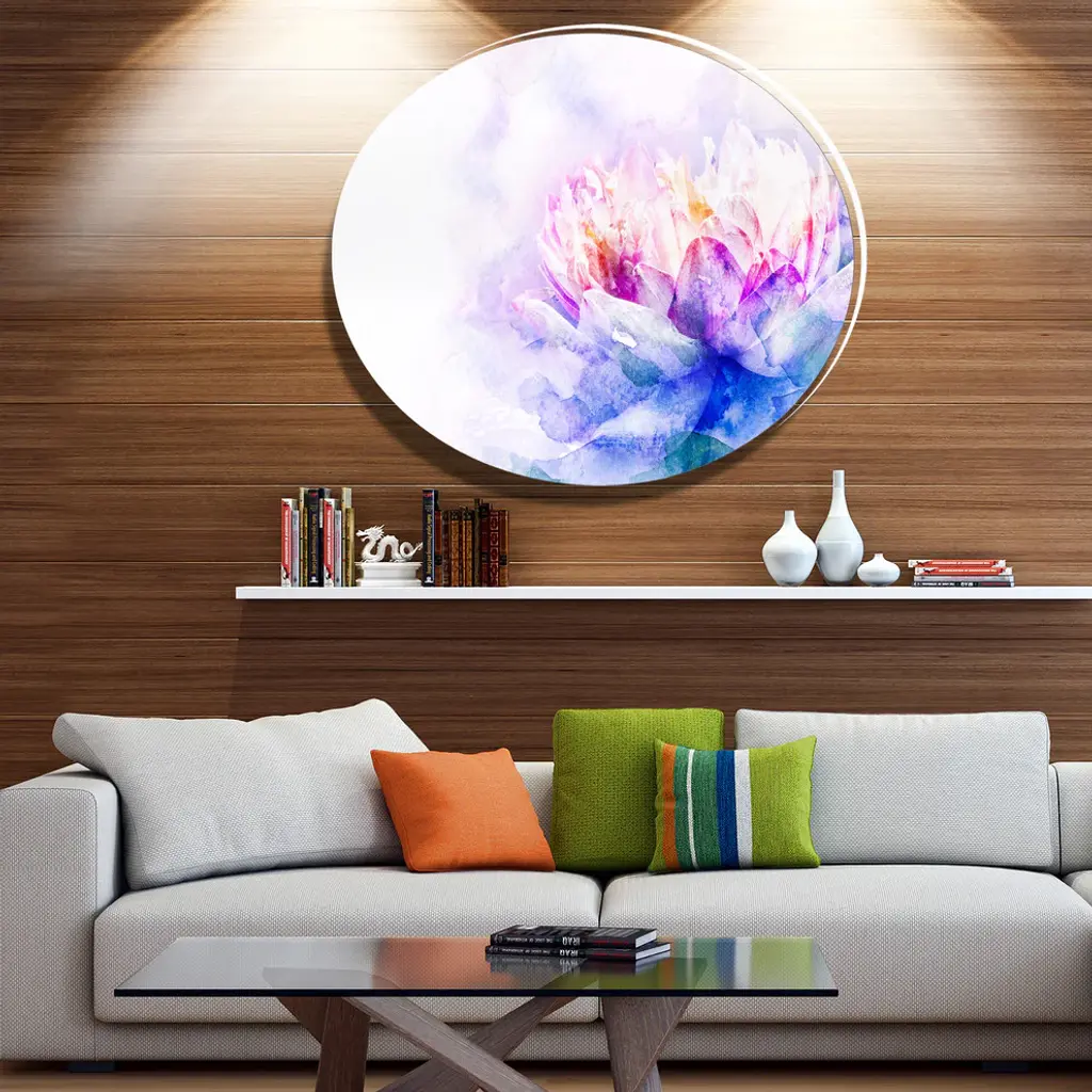 Bring Contemporary Abstraction to your home with this large Circle Metal wall art. This Blue Flower Watercolor Metal Artwork makes it the focal point of any room or office. - White Gloss Coating ensures colors are extra vibrant with light reflection.- Aluminum grade Sheet Metal with 1 inch mounting frame on the back giving the illusion that the artwork is floating on the wall..- Mounting Brackets are included along with instructions.- High Quality Digital images are created directly into a glossy aluminum panel producing a stunning and captivating print into the glossy finish of the metal.- Water, Fire and Scratch resistant HD Aluminum panels.- Looks better than any photo paper and guaranteed to last at least 20 years- Easy to clean with a microfiber cloth. Colors are far superior to regular Canvas Art. - Easy to Hang