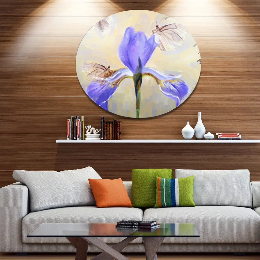 Bring Contemporary Abstraction to your home with this large Circle Metal wall art. This Blue Flower with Butterflies Sketch Metal Artwork makes it the focal point of any room or office. - White Gloss Coating ensures colors are extra vibrant with light reflection.- Aluminum grade Sheet Metal with 1 inch mounting frame on the back giving the illusion that the artwork is floating on the wall..- Mounting Brackets are included along with instructions.- High Quality Digital images are created directly into a glossy aluminum panel producing a stunning and captivating print into the glossy finish of the metal.- Water, Fire and Scratch resistant HD Aluminum panels.- Looks better than any photo paper and guaranteed to last at least 20 years- Easy to clean with a microfiber cloth. Colors are far superior to regular Canvas Art. - Easy to Hang