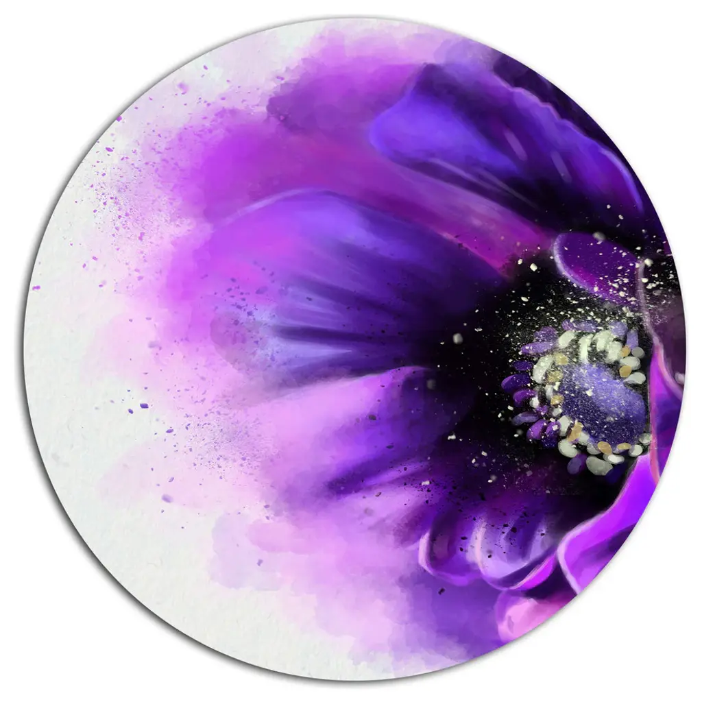 Bring Contemporary Abstraction to your home with this large Circle Metal wall art. This Blue Flower with Yellow Stigma Metal Artwork makes it the focal point of any room or office. - White Gloss Coating ensures colors are extra vibrant with light reflection.- Aluminum grade Sheet Metal with 1 inch mounting frame on the back giving the illusion that the artwork is floating on the wall..- Mounting Brackets are included along with instructions.- High Quality Digital images are created directly into a glossy aluminum panel producing a stunning and captivating print into the glossy finish of the metal.- Water, Fire and Scratch resistant HD Aluminum panels.- Looks better than any photo paper and guaranteed to last at least 20 years- Easy to clean with a microfiber cloth. Colors are far superior to regular Canvas Art. - Easy to Hang