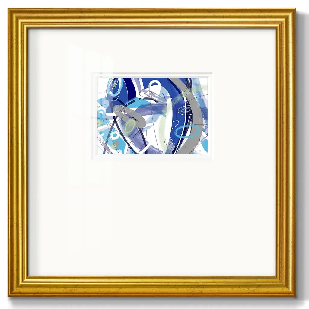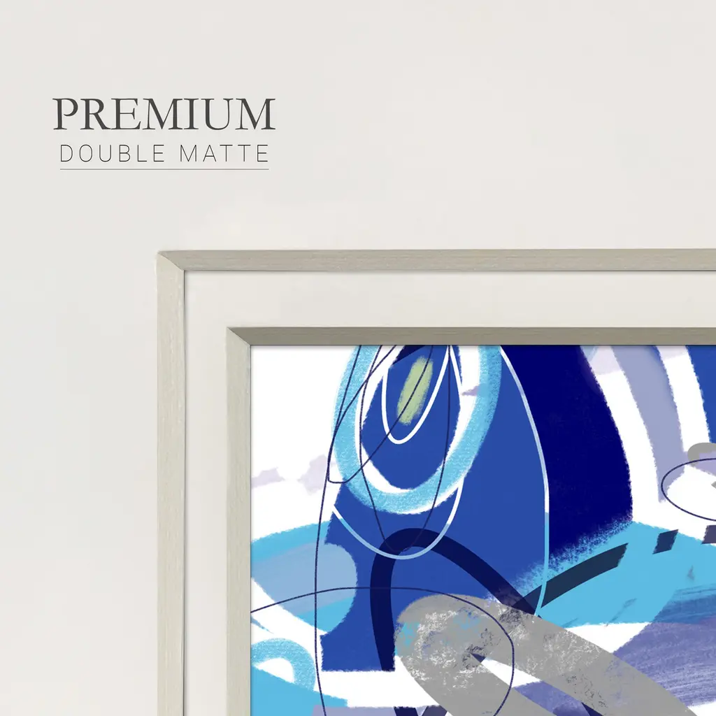Blue FlowPremium Framed Print A framed cold pressed paper print featuring superior double matting and quality frame. 2 SIZES AVAILABLE 16''X16''' - Overall Size 20''X20''' - Overall Size Each piece is made to order. Each piece comes with hanging hardware. Made in the USA Ready to Hang Giclee Paper Print Plexiglass Beveled Matt Board Double Matte Board