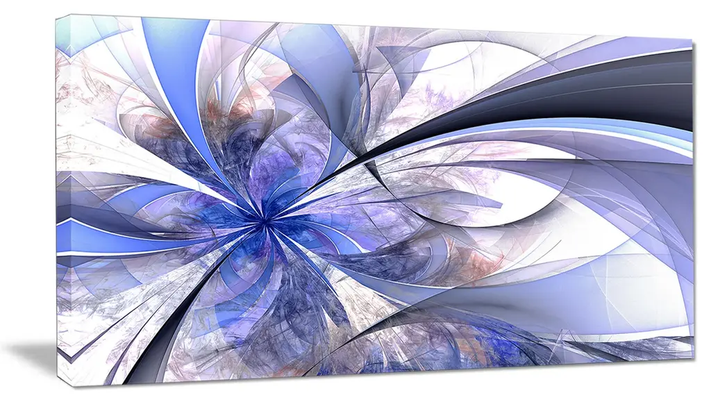The Blue Fractal Flower Design in White canvas art print is sure to make an impression on anyone who sees it. This artwork is gallery wrapped around a 1-inch solid wood frame and arrives carefully packaged and entirely ready to hang on the wall. Design Art only uses the highest resolution and pigments to ensure a crisp colorful print that is never faded or pixelated. This artwork is sure to be a conversation starter in any home or office.