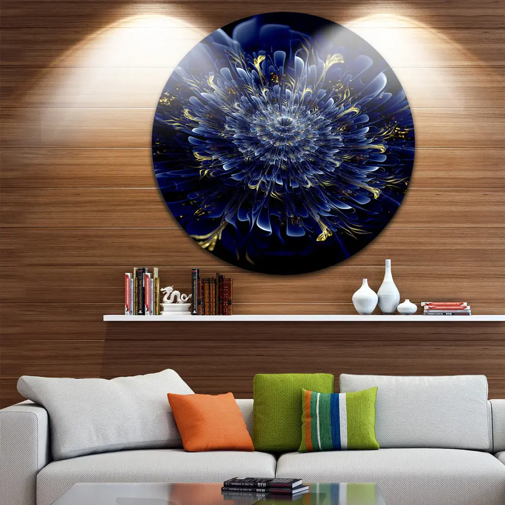 Bring Contemporary Abstraction to your home with this large Circle Metal wall art. This Blue Fractal Flower Metal Artwork makes it the focal point of any room or office. - White Gloss Coating ensures colors are extra vibrant with light reflection.- Aluminum grade Sheet Metal with 1 inch mounting frame on the back giving the illusion that the artwork is floating on the wall..- Mounting Brackets are included along with instructions.- High Quality Digital images are created directly into a glossy aluminum panel producing a stunning and captivating print into the glossy finish of the metal.- Water, Fire and Scratch resistant HD Aluminum panels.- Looks better than any photo paper and guaranteed to last at least 20 years- Easy to clean with a microfiber cloth. Colors are far superior to regular Canvas Art. - Easy to Hang