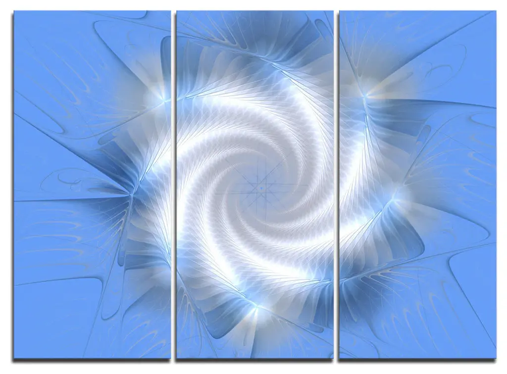 "Blue Fractal Flower In Dark" Metal Wall Art, 3 Panels, 36"x28"