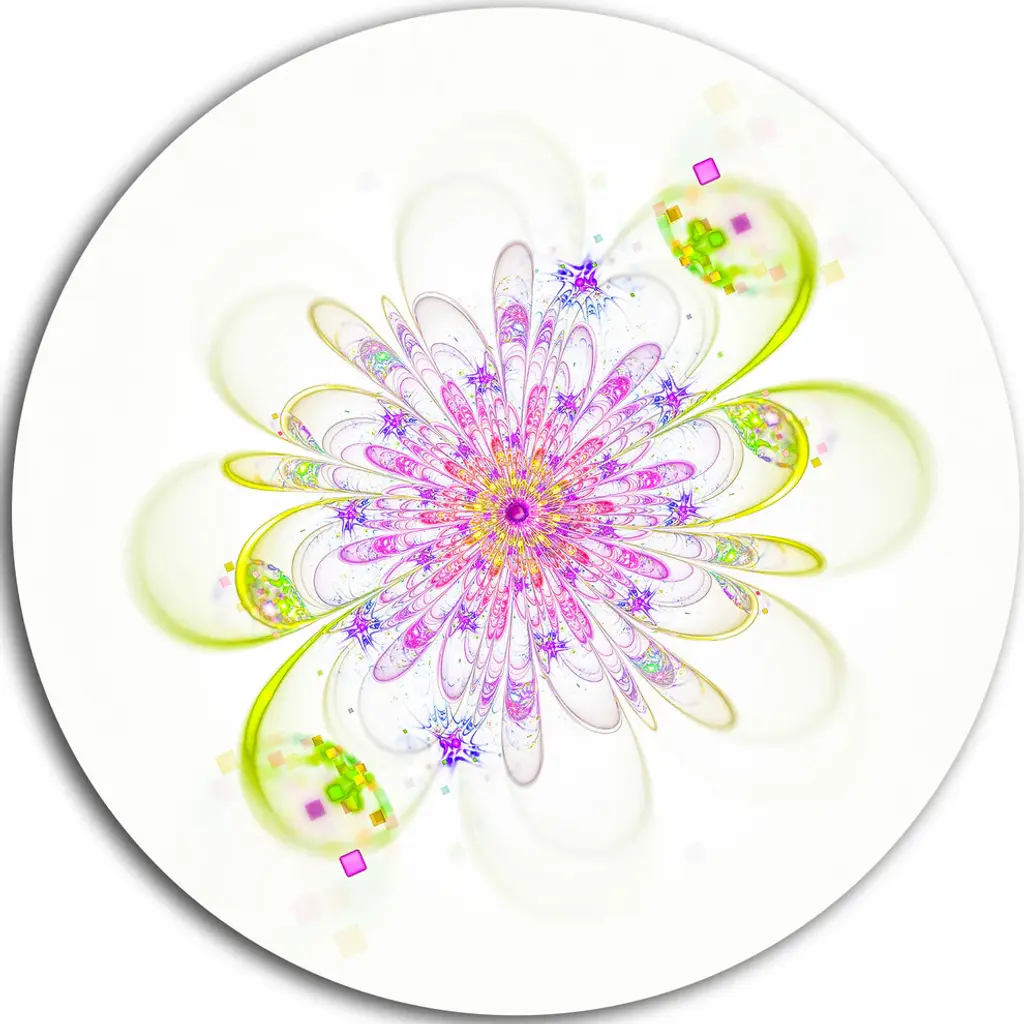 Bring Contemporary Abstraction to your home with this large Circle Metal wall art. This Blue Fractal Flower with Abstract Petals Metal Artwork makes it the focal point of any room or office. - White Gloss Coating ensures colors are extra vibrant with light reflection.- Aluminum grade Sheet Metal with 1 inch mounting frame on the back giving the illusion that the artwork is floating on the wall..- Mounting Brackets are included along with instructions.- High Quality Digital images are created directly into a glossy aluminum panel producing a stunning and captivating print into the glossy finish of the metal.- Water, Fire and Scratch resistant HD Aluminum panels.- Looks better than any photo paper and guaranteed to last at least 20 years- Easy to clean with a microfiber cloth. Colors are far superior to regular Canvas Art. - Easy to Hang