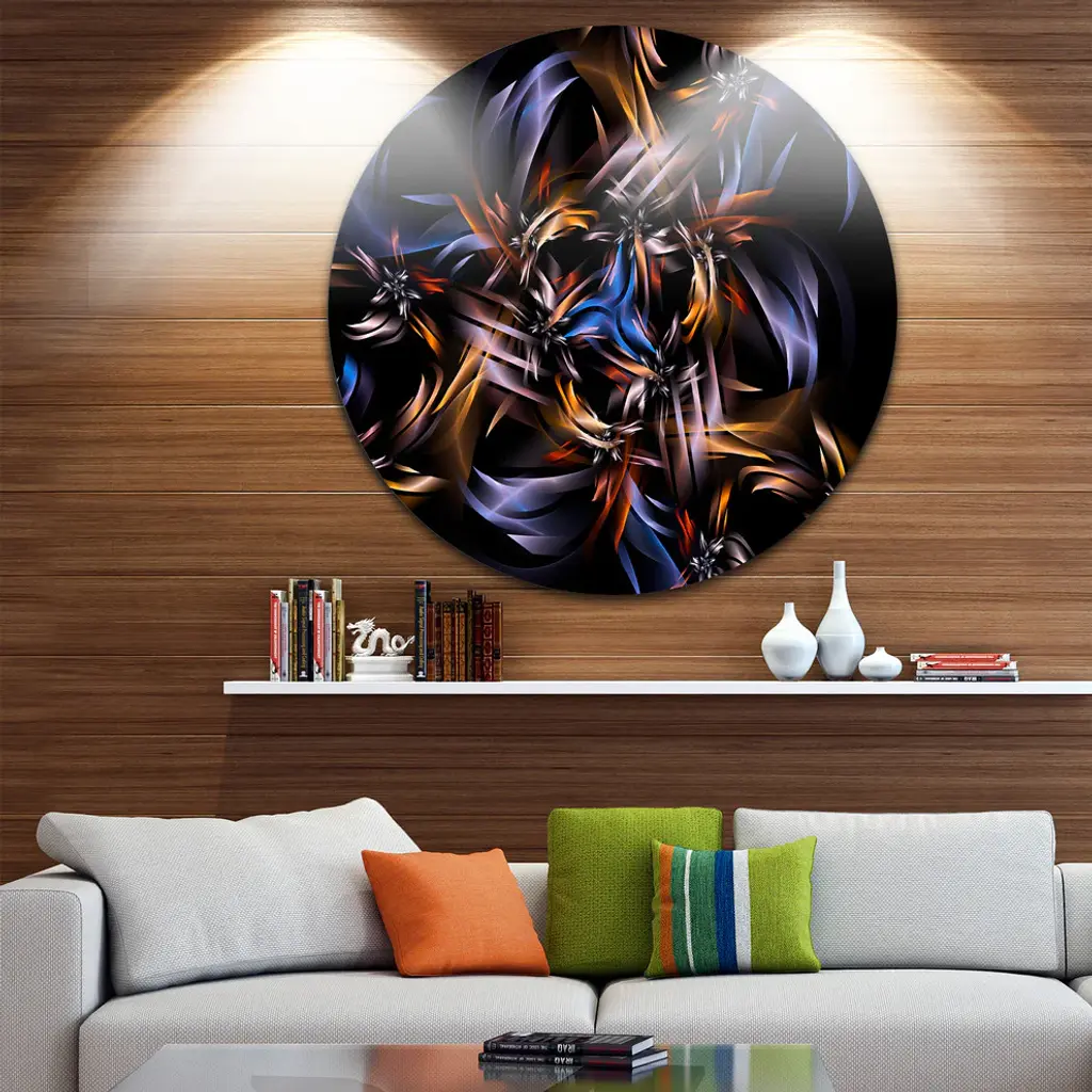 Bring Contemporary Abstraction to your home with this large Circle Metal wall art. This Blue Fractal Light Art in Dark Metal Artwork makes it the focal point of any room or office. - White Gloss Coating ensures colors are extra vibrant with light reflection.- Aluminum grade Sheet Metal with 1 inch mounting frame on the back giving the illusion that the artwork is floating on the wall..- Mounting Brackets are included along with instructions.- High Quality Digital images are created directly into a glossy aluminum panel producing a stunning and captivating print into the glossy finish of the metal.- Water, Fire and Scratch resistant HD Aluminum panels.- Looks better than any photo paper and guaranteed to last at least 20 years- Easy to clean with a microfiber cloth. Colors are far superior to regular Canvas Art. - Easy to Hang