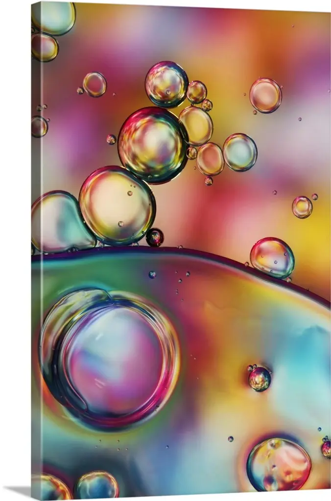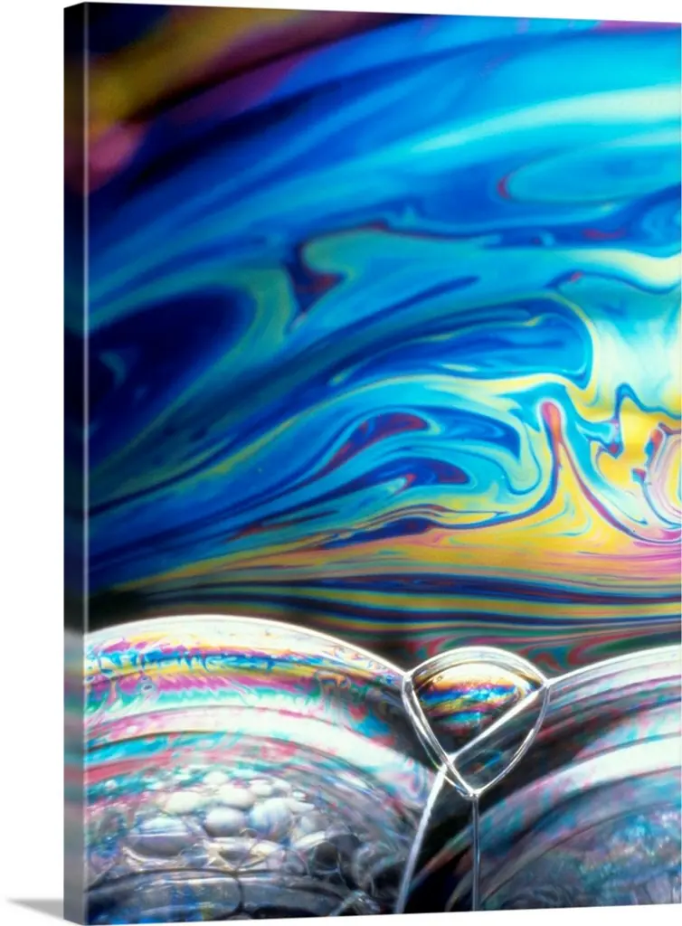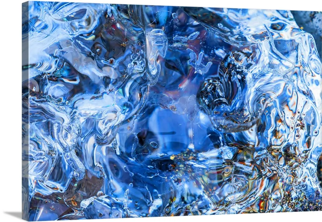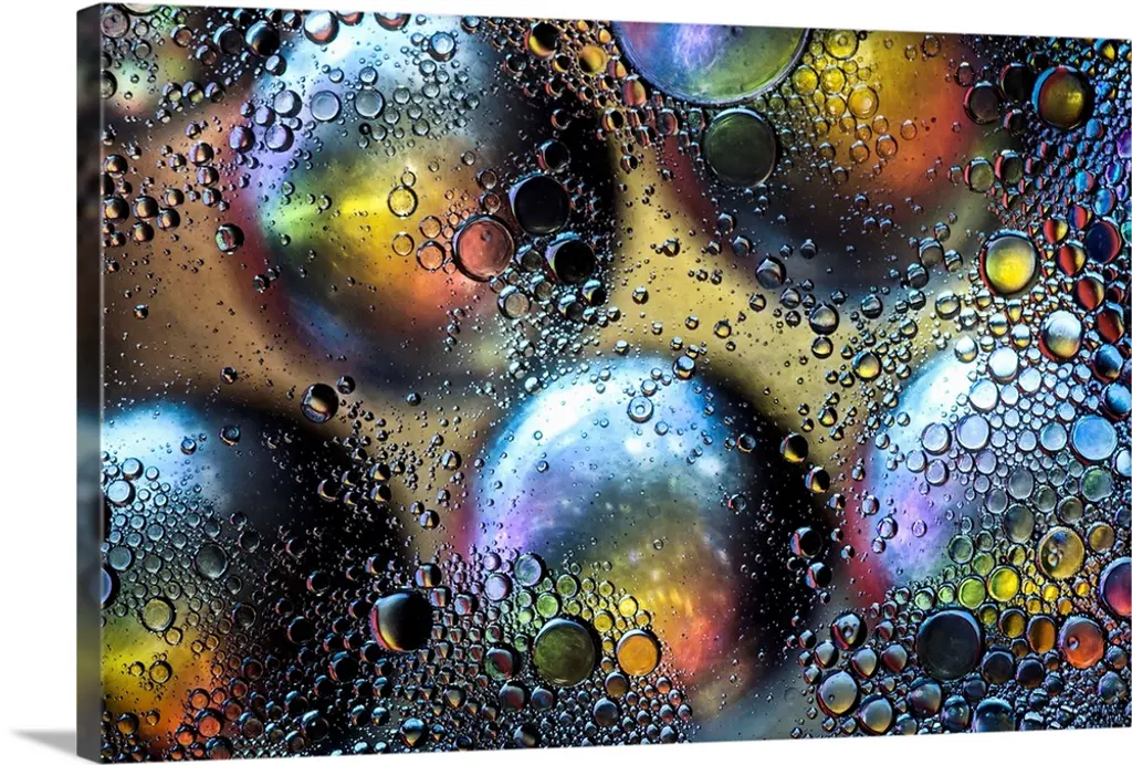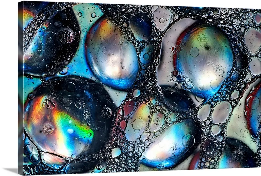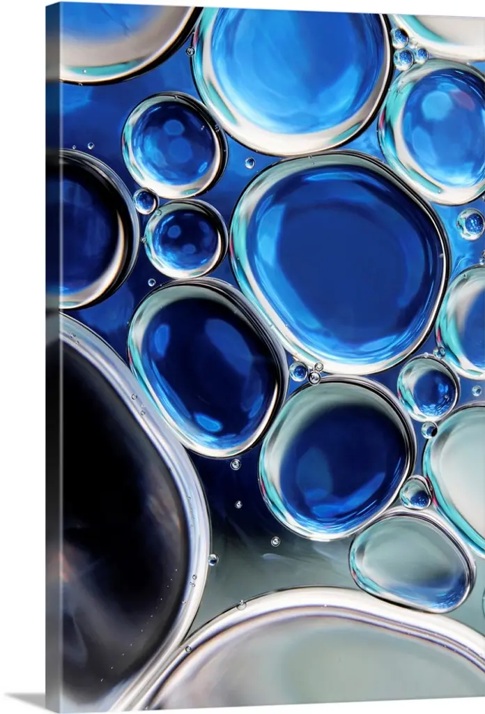 Blue Fractal Planet Of Bubbles, Oversized Abstract Canvas Art Print, 60x40